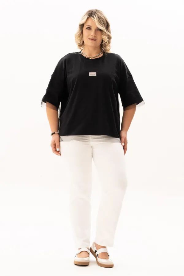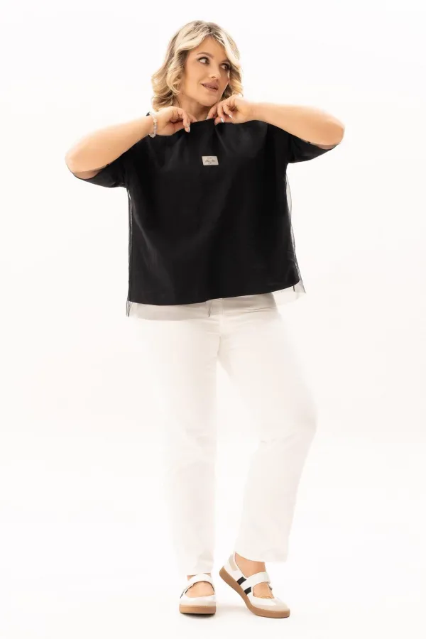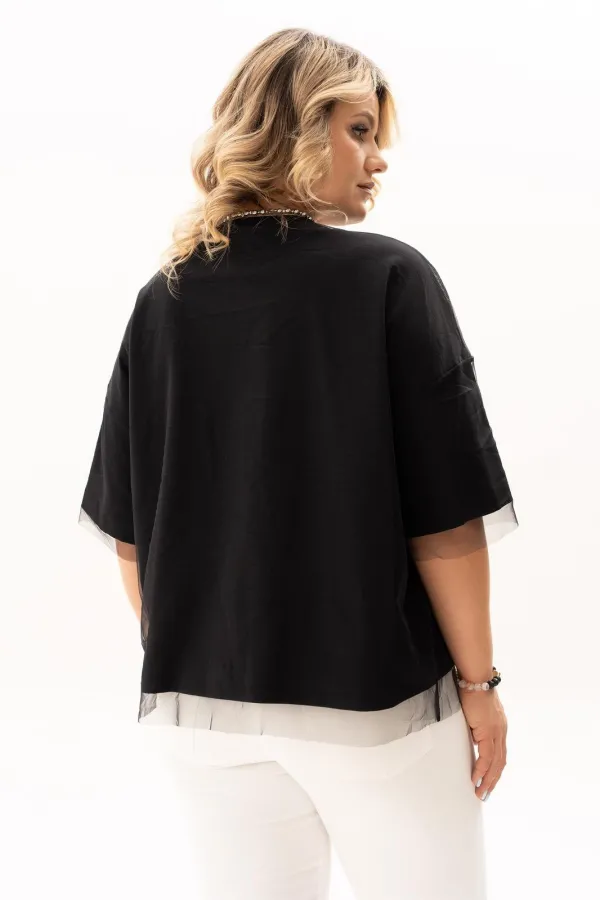Женская блузка - универсальный предмет гардероба, который подойдет для любого случая . Блуза двойная с сеткой станет незаменимой и базовой в любом гардеробе. Мягкая, приятная к телу сетка смотрится дорого и элегантно, создавая эффектный наряд. Не упустите возможность приобрести эту многофункциональную блузку и создать множество стильных образов как для работы, так и для повседневной и праздничной жизни. Блуза легко вписывается в праздничную одежду и деловой образ. Ткань блузки практически не мнется, что позволяет выглядеть безупречно в течение всего дня. Носите ее с джинсами для легкости и свободы, с юбкой для женственности или с брюками для делового образа. Благодаря разнообразию вариантов комбинирования, вы будете выглядеть модно и стильно в любой ситуации.