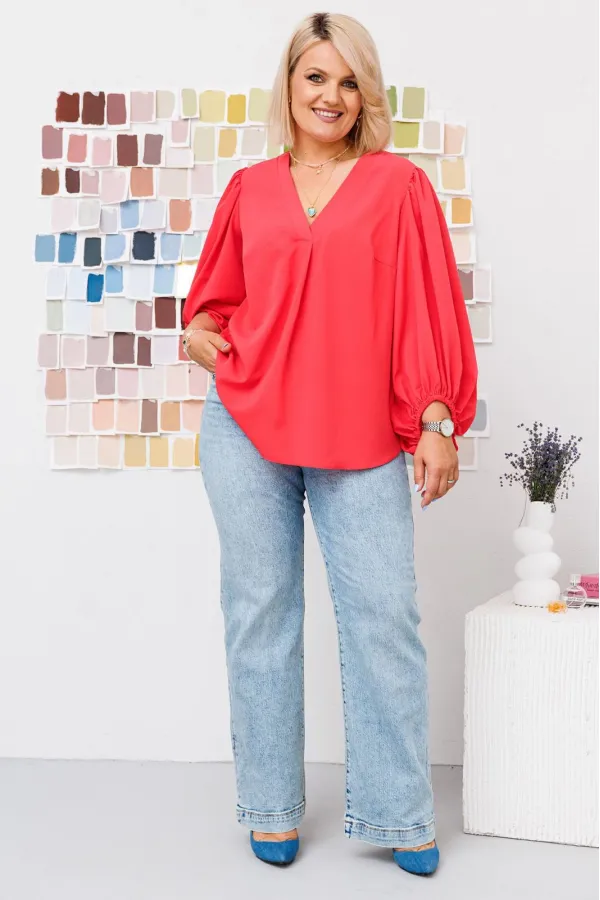 Представляем вам женскую блузку от Anastasia, которая станет незаменимой вещью вашего гардероба. Особенности модели: свободный силуэт; горловина V-образной формы с планками и складкой по центру, по спинке средний шов. Жемчужина этой рубашки является объёмный рукав, низ рукава фигурный, на резинке, по окату сборка. Длина спинки: (50-52) - 71 см, (54-58) - 72 см. Длина рукава: (50-52) - 58 см., (54-58) – 59см. Эта рубашка – идеальный выбор для любого торжественного мероприятия или вечеринки. Она отлично подойдет для важных встреч или даже для офисного стиля. Наша стильная блузка позволяет комфортно чувствовать себя и безупречно выглядеть даже в самых активных движениях. Объемный рукав позволяет создать легкий и элегантный образ, а легкая ткань обеспечит вам максимальный комфорт даже в самые жаркие дни. Мы создали эту тунику с любовью к деталям. Ее стильный дизайн подчеркивает вашу женственность и придаст особый шарм вашему образу. Блузка идеально сочетается с различными низами – юбками, брюками или джинсами, позволяя вам создавать множество уникальных и неповторимых образов. Женская блузка, которая выгодно подчеркнет вашу индивидуальность и изысканный вкус. Успейте завладеть этой нарядной, вечерней и праздничной блузкой прямо сейчас и покорите своим неповторимым стилем все окружающих! В бренде Анастасия Вы всегда найдете богатый выбор качественной одежды для женщин больших размеров.