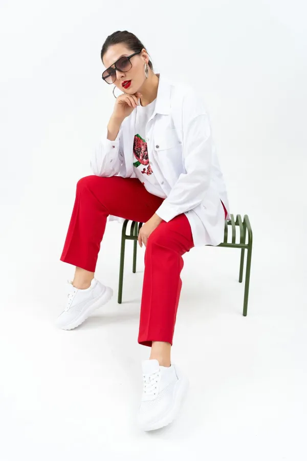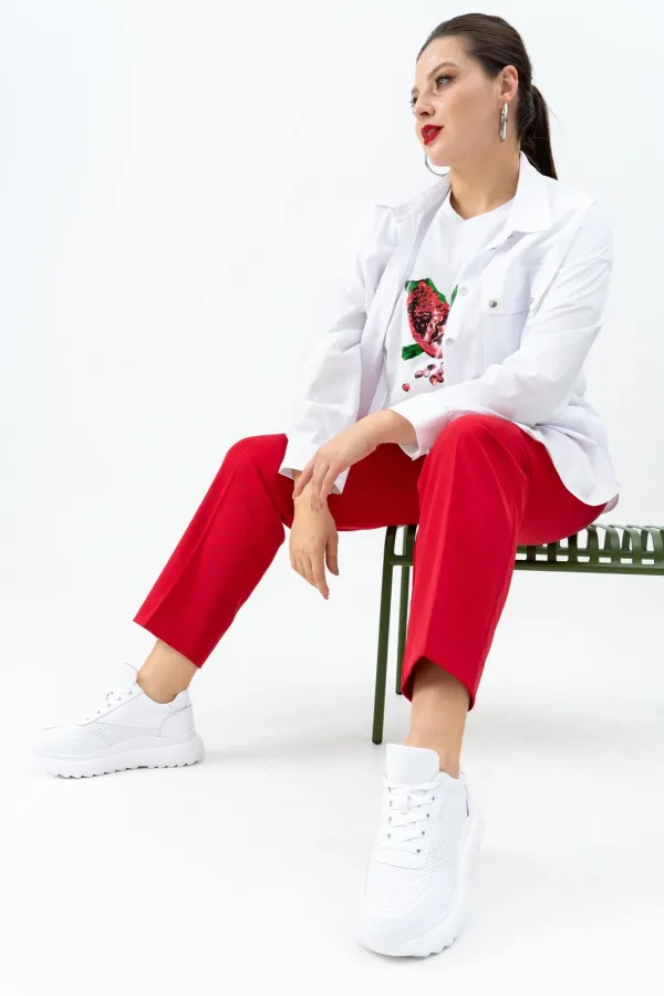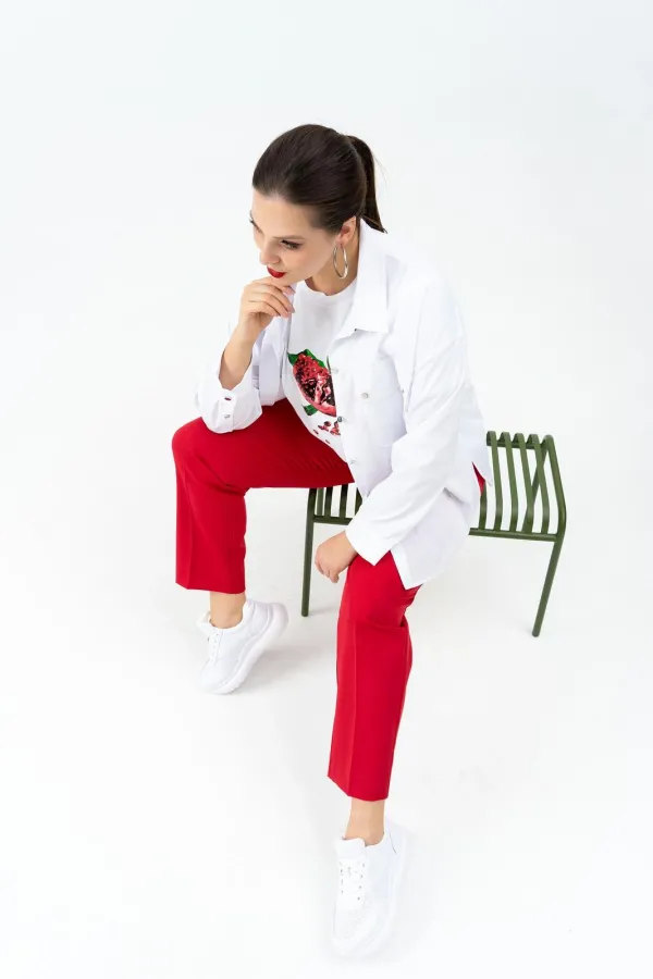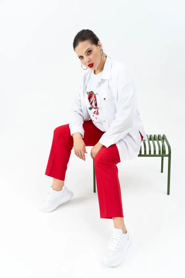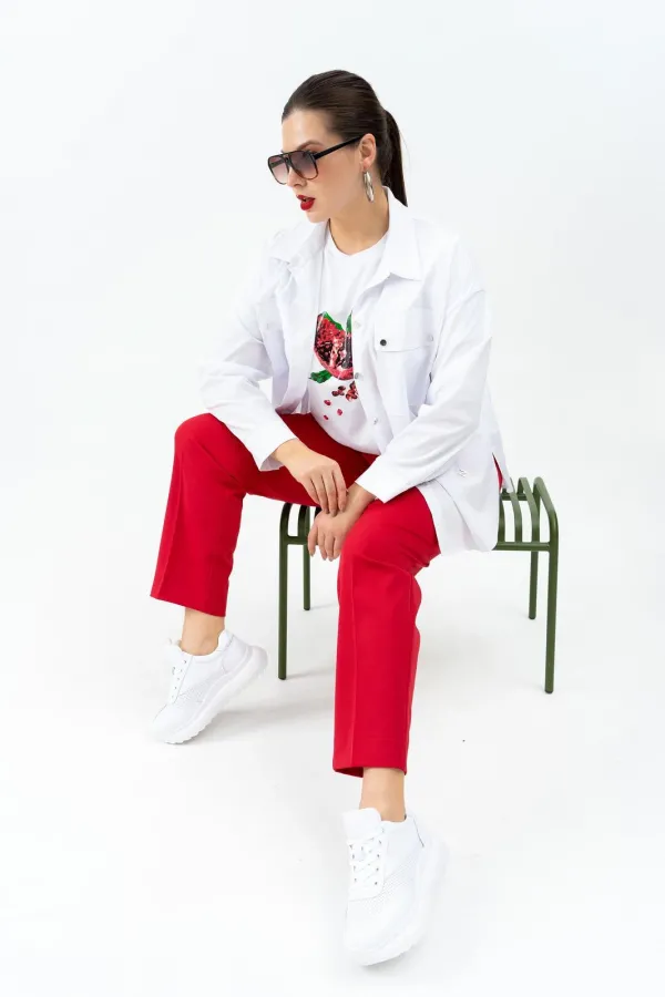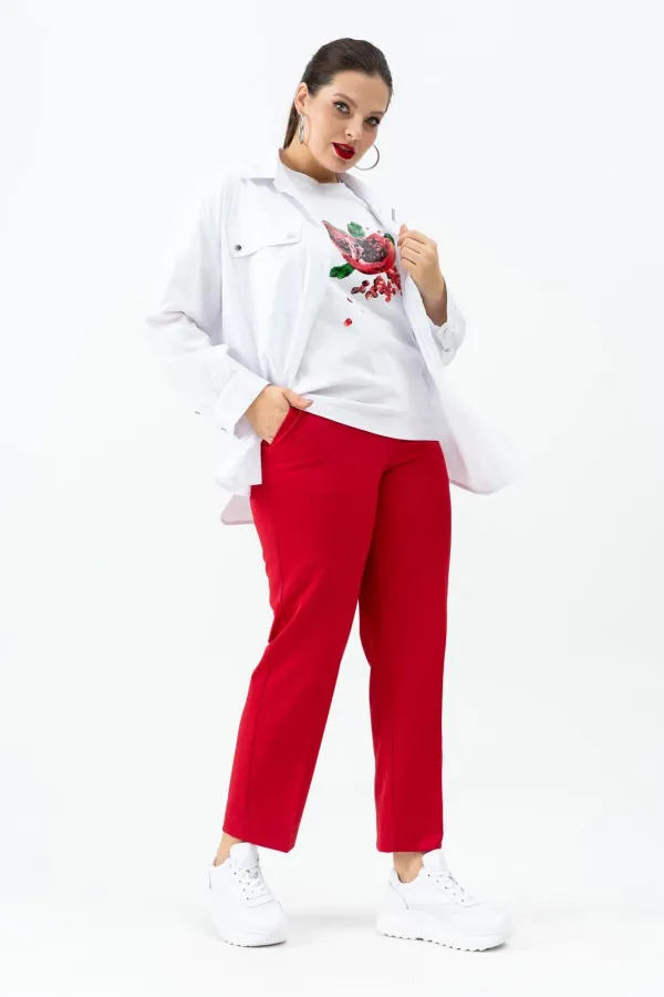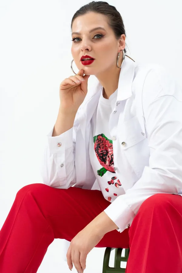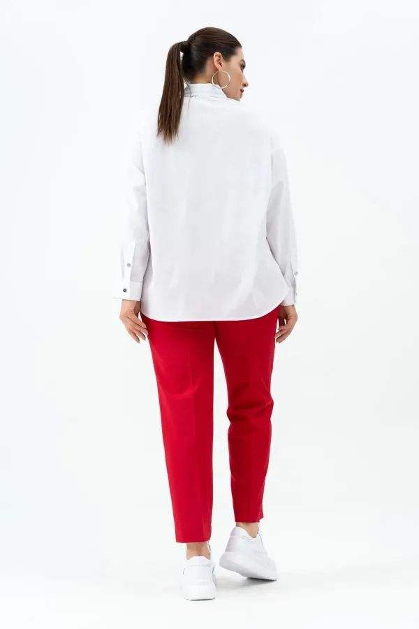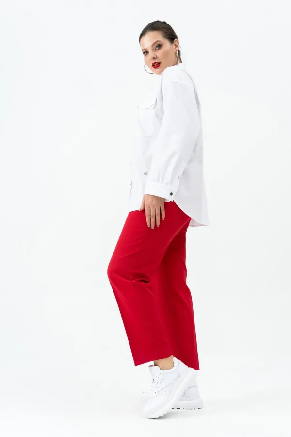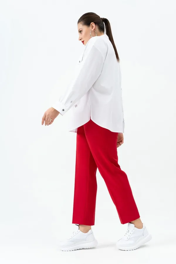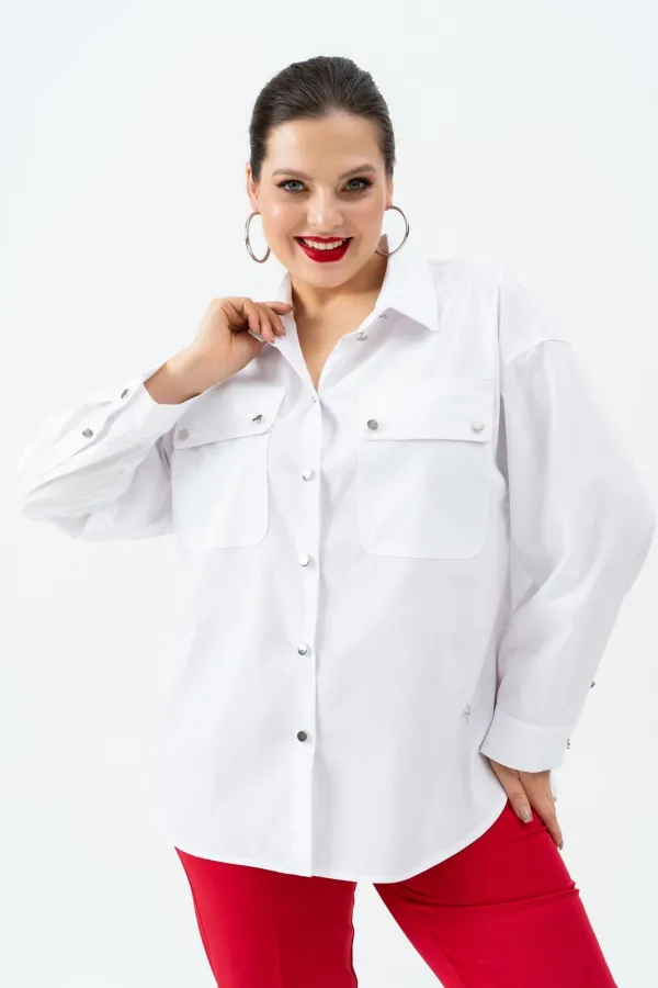 Рубашка женская выполнена из 100% хлопковой ткани, с отложным воротником на стойке, с центральной застёжкой на петли и пуговицы. полочки с нагрудными вытачками с накладными карманами к клапанами, застёгивающиеся на петл... Читать далее...