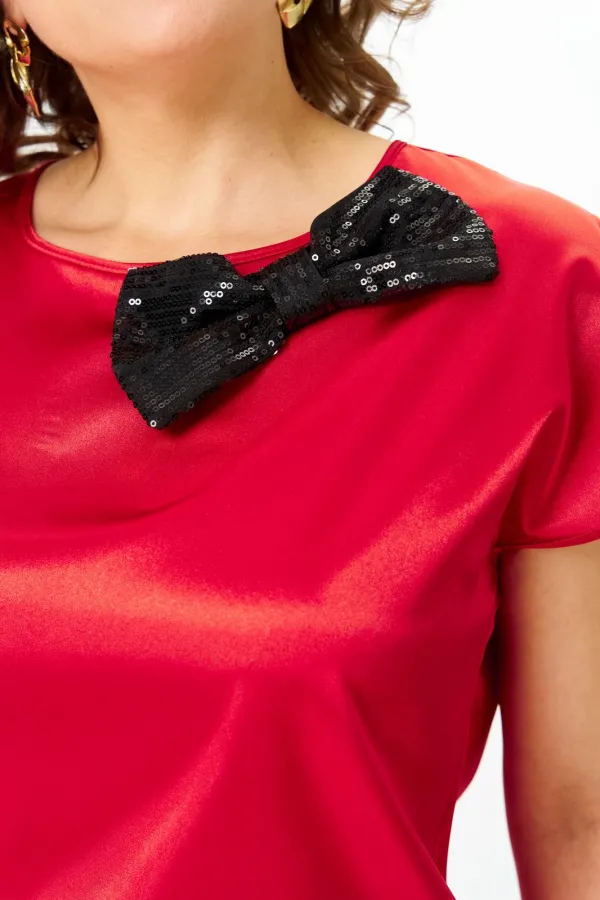 Топ со спущенной линией плеча, декорированный бантом из пайеток– это идеальный выбор для тех, кто ищет стильное и практичное решение для праздничных и офисных нарядов. Он изготовлен из яркого атласа, который обеспечивает... Читать далее...