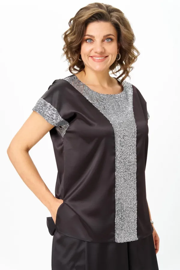 Топ со спущенной линией плеча, декорированный вставками из пайеток– это идеальный выбор для тех, кто ищет стильное и практичное решение для праздничных и офисных нарядов. Он изготовлен из атласа, который обеспечивает дол... Читать далее...