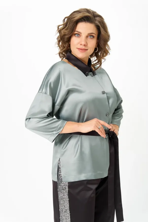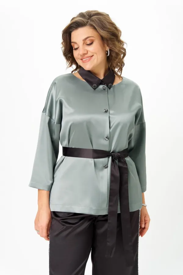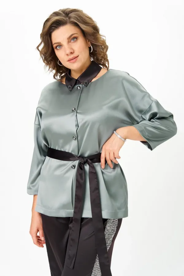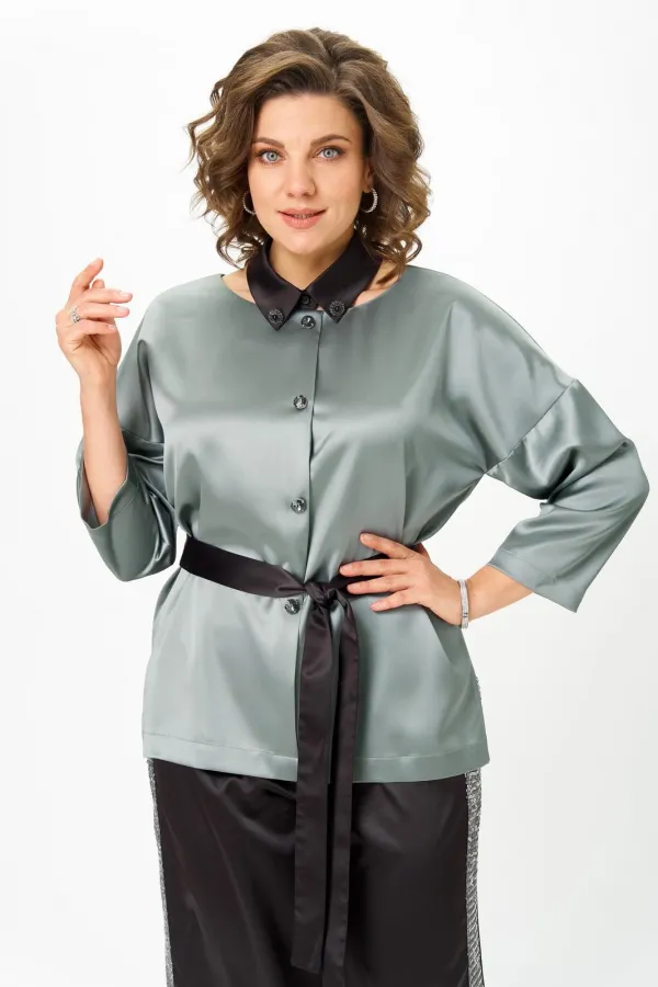Стильная атласная блузка со съёмным воротником и дизайнерскими пуговицами, способна сделать ваш гардероб еще более модным и уникальным. Отлично подойдет для праздника, прогулки, романтического свидания. Модель с рукавом ¾, свободным прямым кроем и съёмным поясом подойдет для любой фигуры, подчеркнёт её достоинства и скроет недостатки.