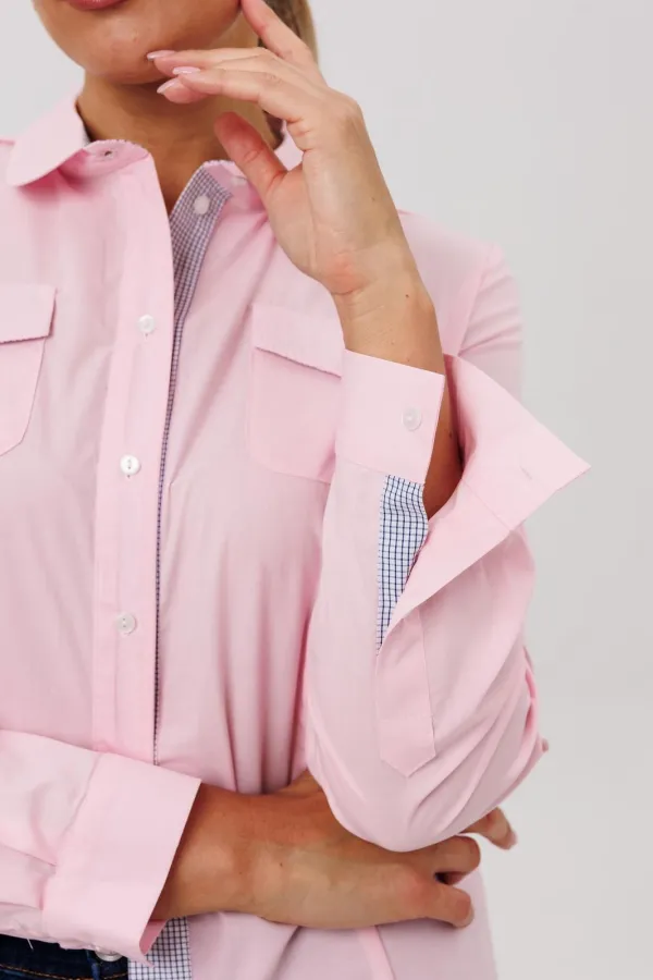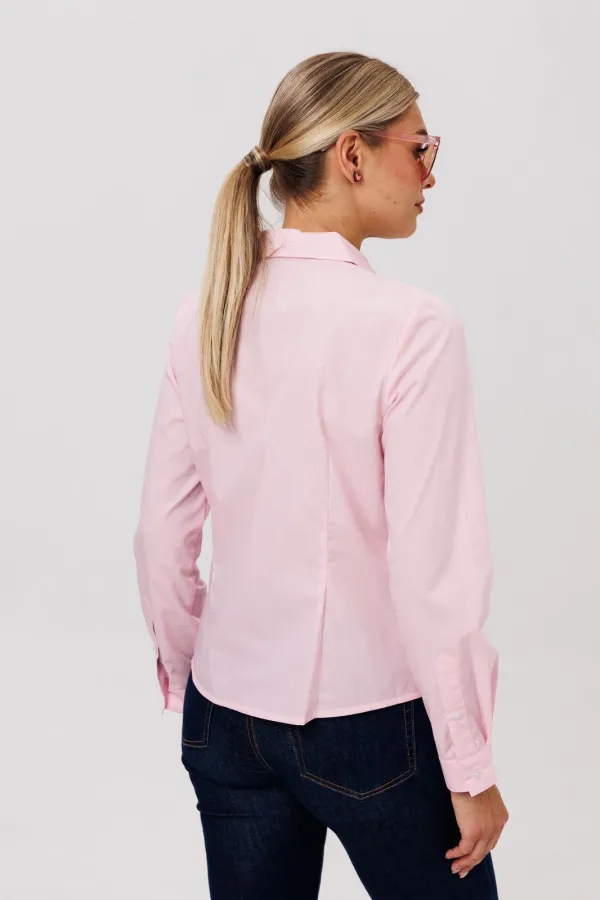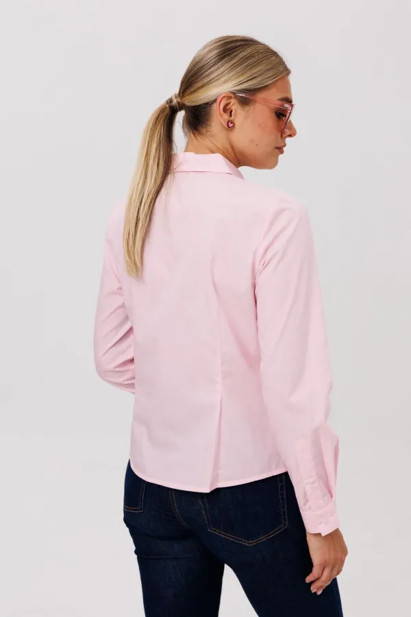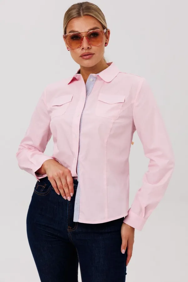 Классическая блуза полуприлегающего силуэта, создающая элегантный и утонченный силуэт. Модель сконструирована с талевыми вытачками по переду и спинке, что обеспечивает идеальную посадку по фигуре. Дополняют образ накладные карманы с аккуратными клапанами.