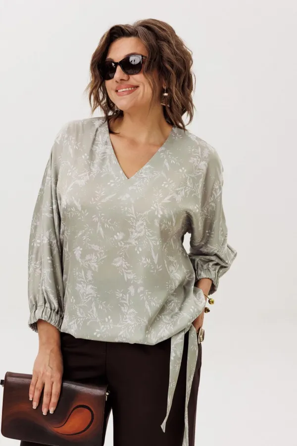 Особую динамику и индивидуальность блузе придают детали: цельнокроеные рукава три четверти подчёркивают целостность и плавность линий, а притачной пояс и манжеты, собранные в нежную сборку благодаря эластичной резинке, создают выразительный контраст с текучестью основной ткани. Эта умная конструкция позволяет вам самостоятельно регулировать длину блузы, творчески преобразуя её силуэт — от парящего и расслабленного до более собранного и чёткого.