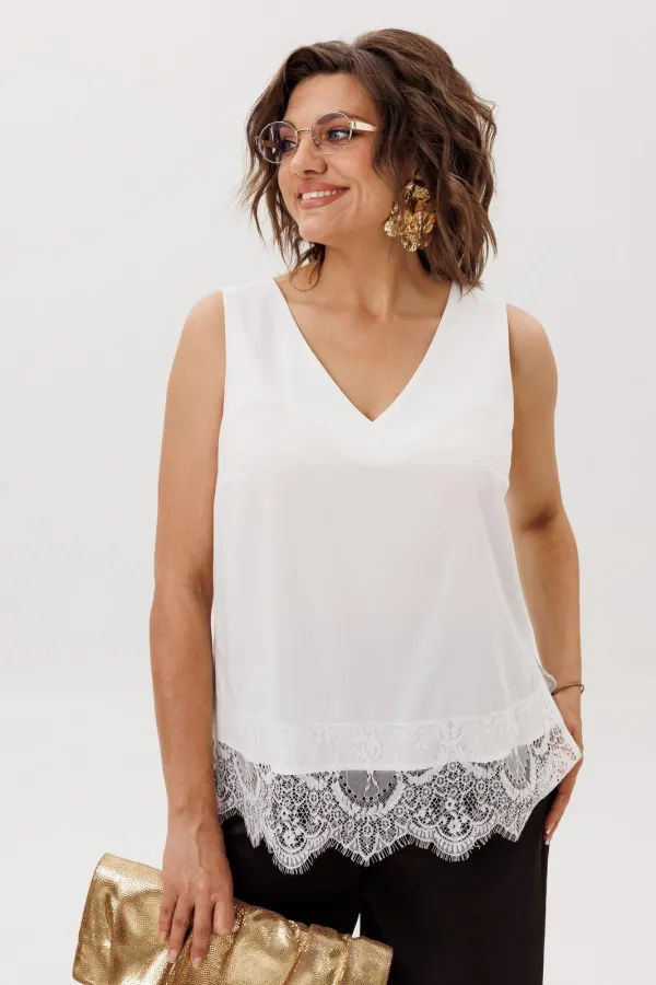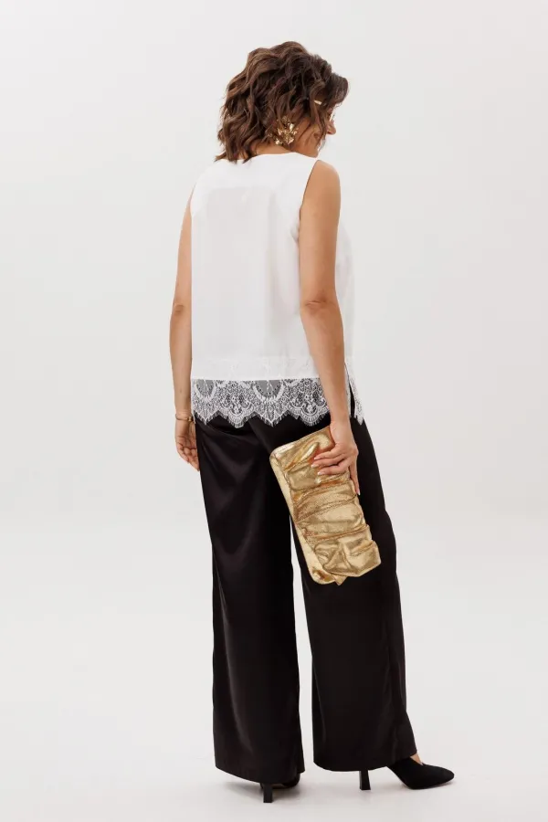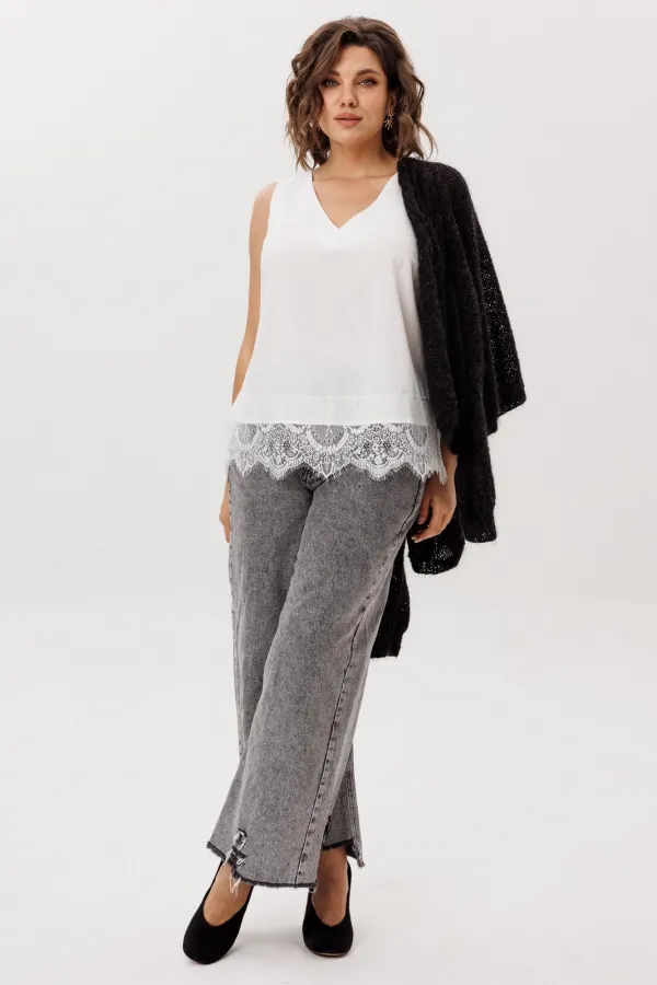 Но настоящая поэзия скрыта внизу: великолепное кружево, окаймляющее край, добавляет ноту романтики и загадочности. Он создан для того, чтобы его носить и как изюминку образа, кокетливо выглядывающую из-под строгого жакета или уютного свитера, и как самостоятельный акцент для особого случая.