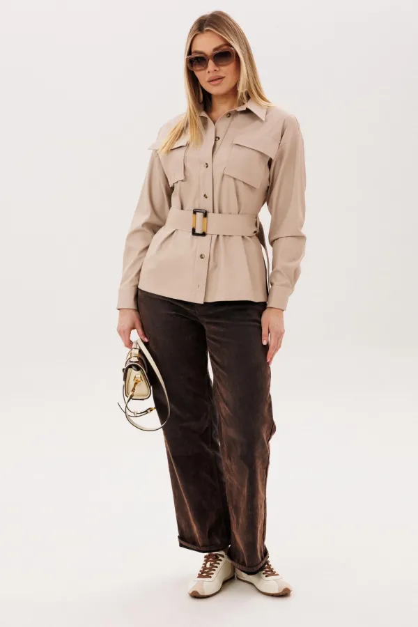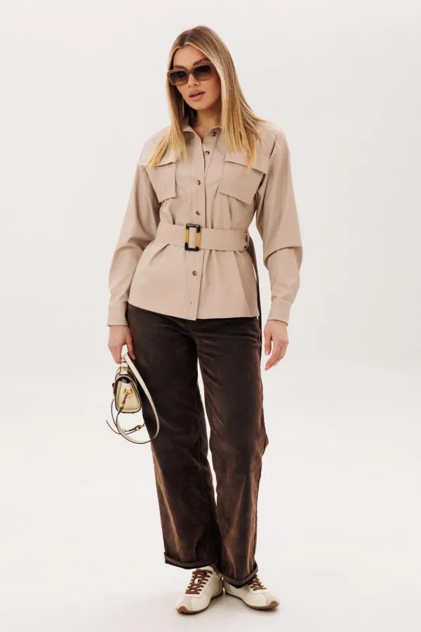 Пояс из той же эко кожи позволяет менять настроение образа - носить рубашку свободно или мягко подчеркнуть талию, создавая более женственный силуэт. Эта модель легко вписывается в гардероб, прекрасно сочетается с джинсами и каблуками, создавая образ, в котором комфорт соединяется с выразительностью. Рубашка, в которой чувствуется уверенность, стиль и особое настроение.Размер 42: ОГ-94; ОТ-98; ОБ-106; ОП-46; ДИ-66; ДР-55; ШП-19.5;