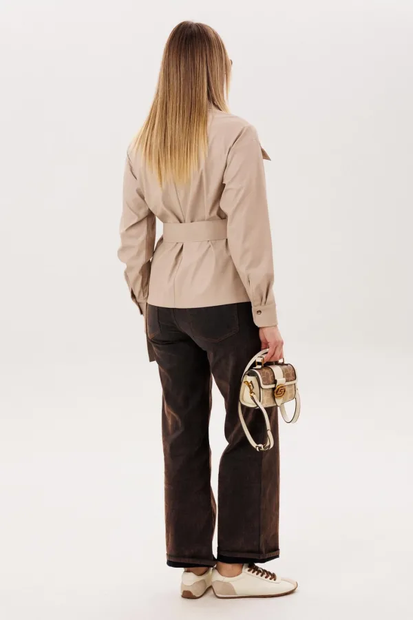 Рубашка от Анелли «саванна скин» - это баланс уверенности, мягкости и современной женственности. Свободный крой создаёт ощущение лёгкости и комфорта, позволяя двигаться свободно и непринуждённо, а отложной воротник на стойке добавляет образу аккуратную, собранную элегантность. Мягкая эко кожа красиво держит форму, придаёт образу характер, оставаясь при этом практичной для повседневной жизни.