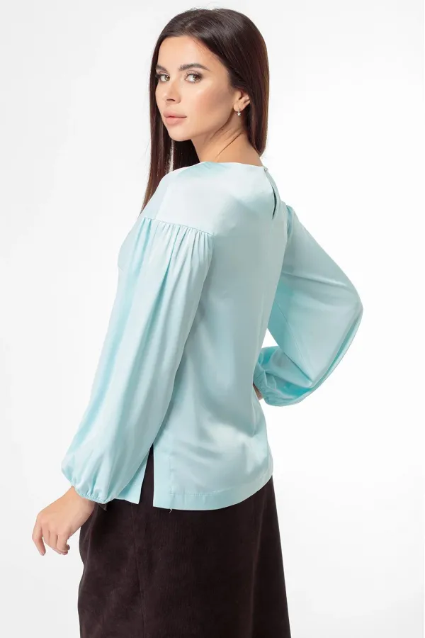Линия плеча удлинена, рукава присборены по шву втачивания, низ рукава собран на резинку.