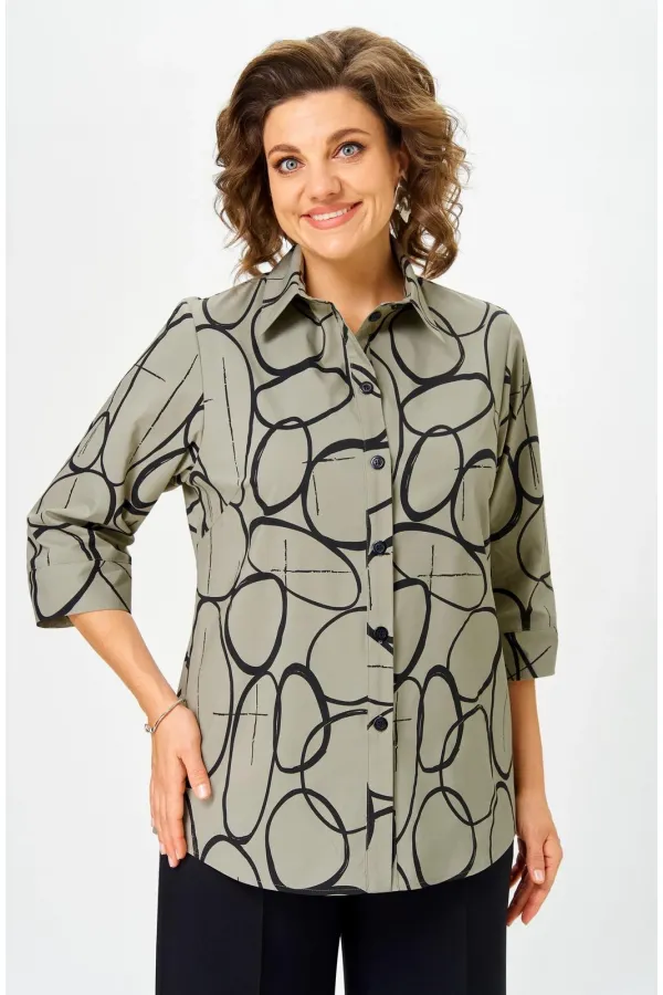 Идеальная блуза для создания стильного базового гардероба.Прямой крой скроет недостатки фигуры и подарит комфорт в течение всего дня. Романтичные рукава 3/4 с манжетами подчеркнут изящество запястий, а элегантный отложной воротник завершит образ. Удобная застежка на пуговицы и боковые разрезы делают блузу невероятно удобной. Длина по спинке 74 см, длина рукава 45.