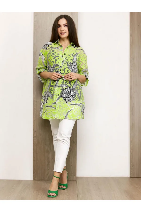 Нарядная блузка с разрезами по бокам. Блузка прямого силуэта на пуговицах. Рукав ¾. Длина рукава регулируется патой. Имеется отложной воротник на стойке. Можно комбинировать и экспериментировать с различными образами. Эт... Читать далее...