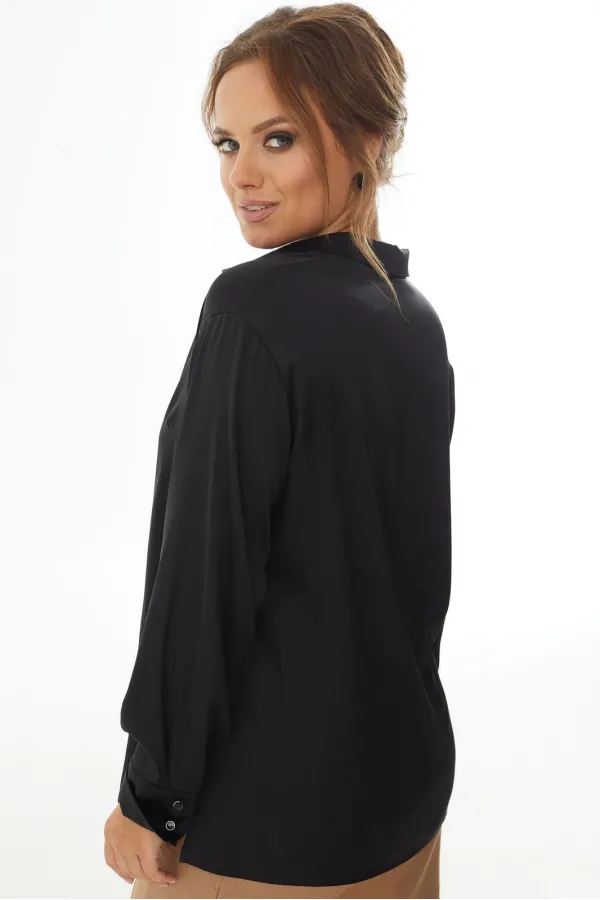 Блузка из сатиновой ткани прямого силуэта. Застегивается по переду на петли-пуговицы. Воротник