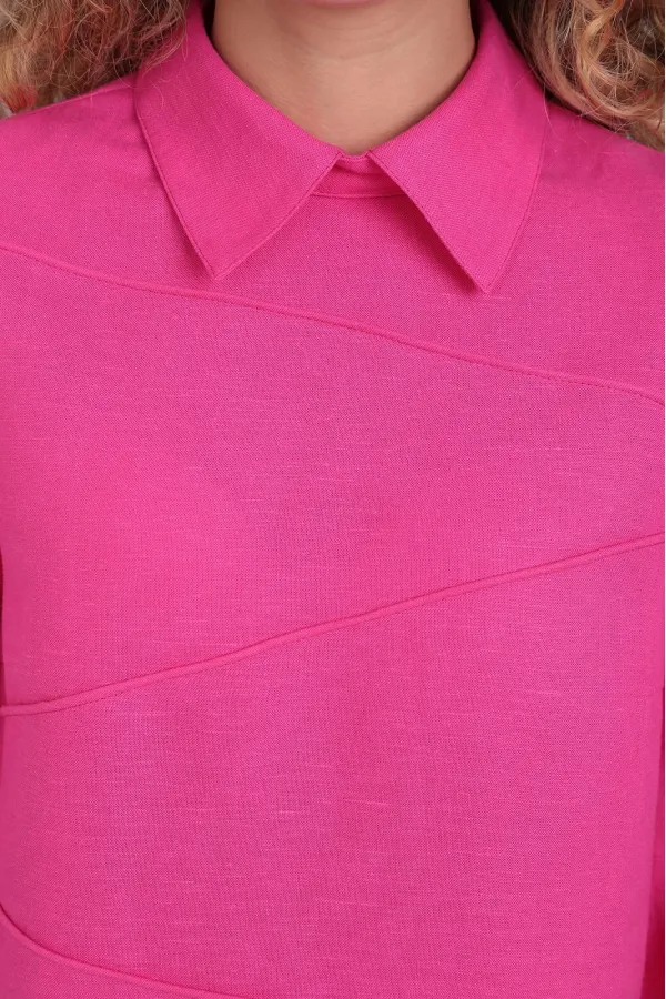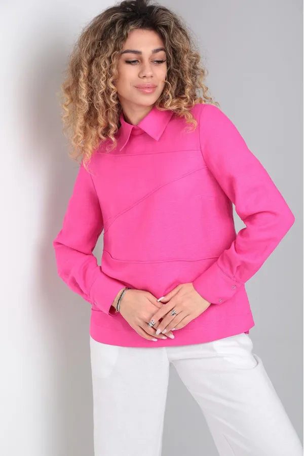 Блузка из из натуральной льняной ткани, полуприлегающего силуэта. Воротник на стойке. Рукав втачной на манжете, по полочке фактурные защипы. Низ двухуровневый, по спинке декоративная складка и застежка молния, в боковых... Читать далее...