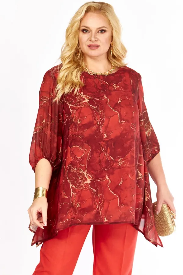 Блуза сводного кроя из принтованного шифона, что придает уникальность стилю своими красками. На полочке нагрудные вытачки, вырез горловины аккуратной округлой формы. Рукав втачной, свободный, низ присборен.... Читать далее...