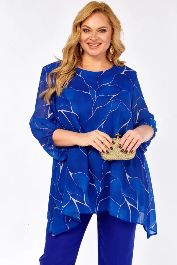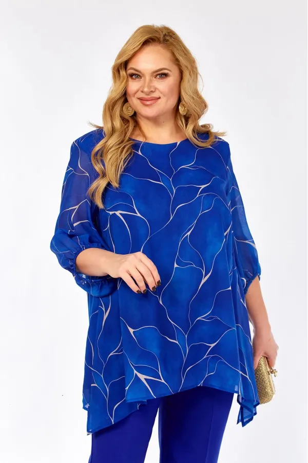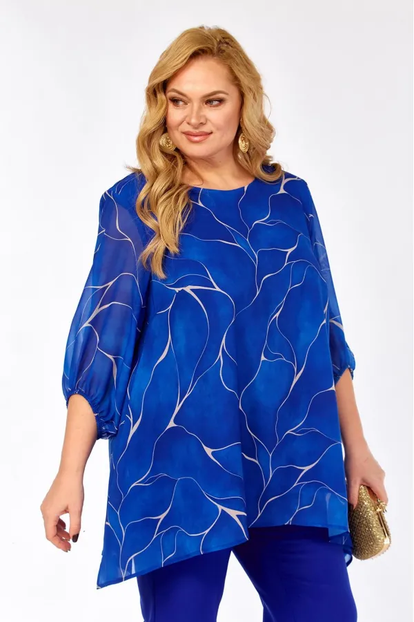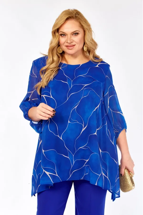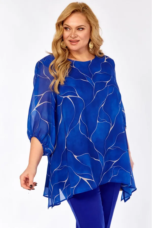 Блуза сводного кроя из принтованного шифона, что придает уникальность стилю своими красками. На полочке нагрудные вытачки, вырез горловины аккуратной округлой формы. Рукав втачной, свободный, низ присборен.... Читать далее...