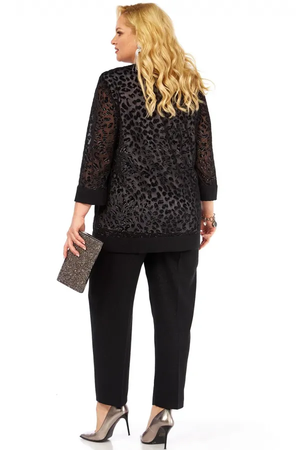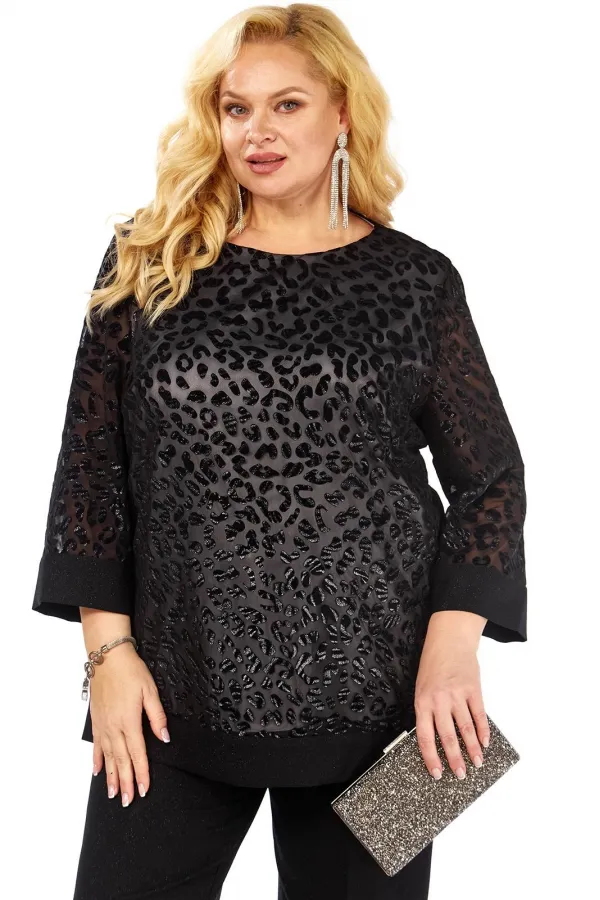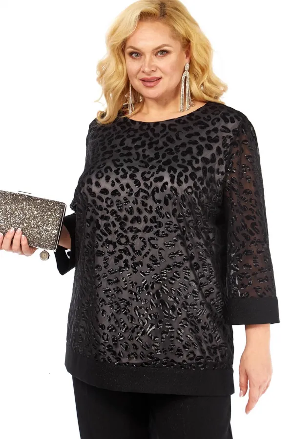 Блузка полуприлегающего силуэта выполнена из легкого шифона с дизайнерским флоком на контрастной подкладке. Горловина округлой формы. Полочка с нагрудными вытачками. Рукав втачной, свободный 7/8. В боковых швах предусмот... Читать далее...