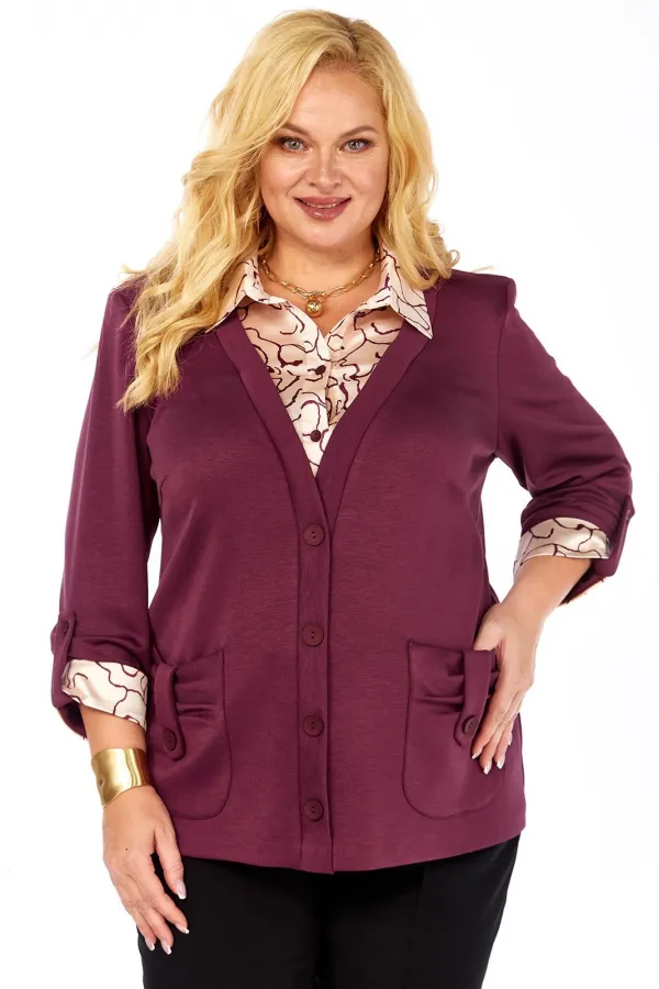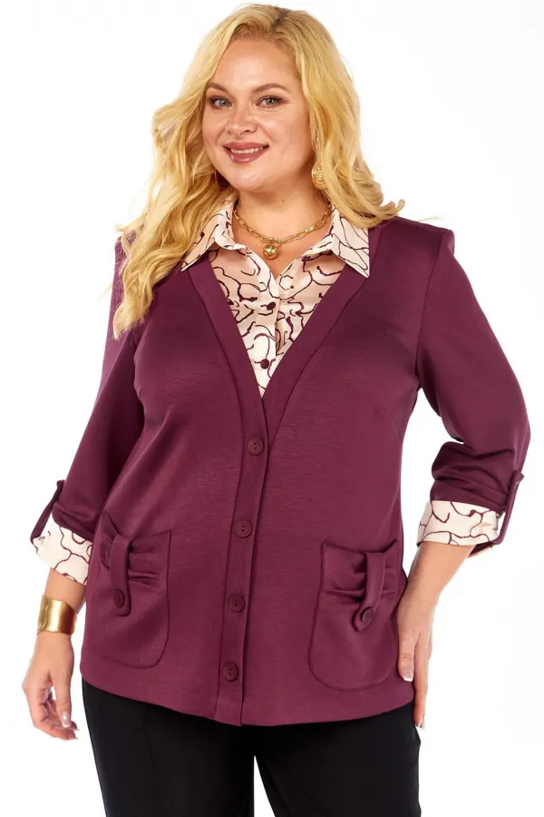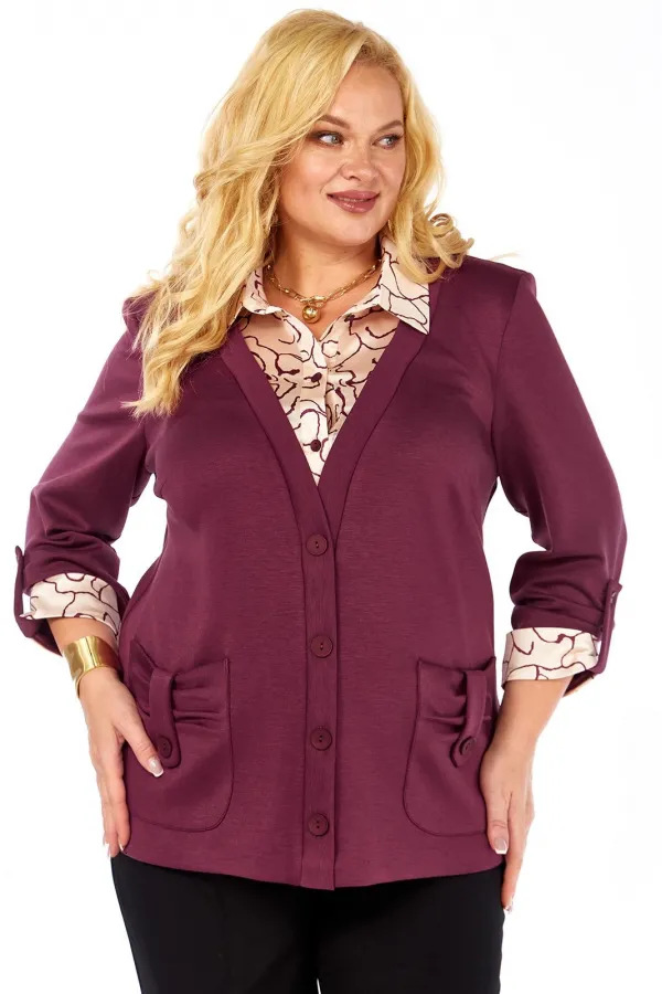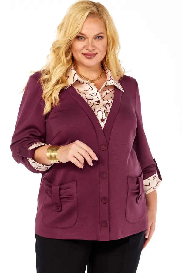 Имитация рубашки под джемпером - это отличный вариант практичной и удобной одежды. Джемпер прямого силуэта, комбинированный, выполнен из мягкого трикотажа и блузочной ткани. Полочка с нагрудными вытачками, накладными фиг... Читать далее...