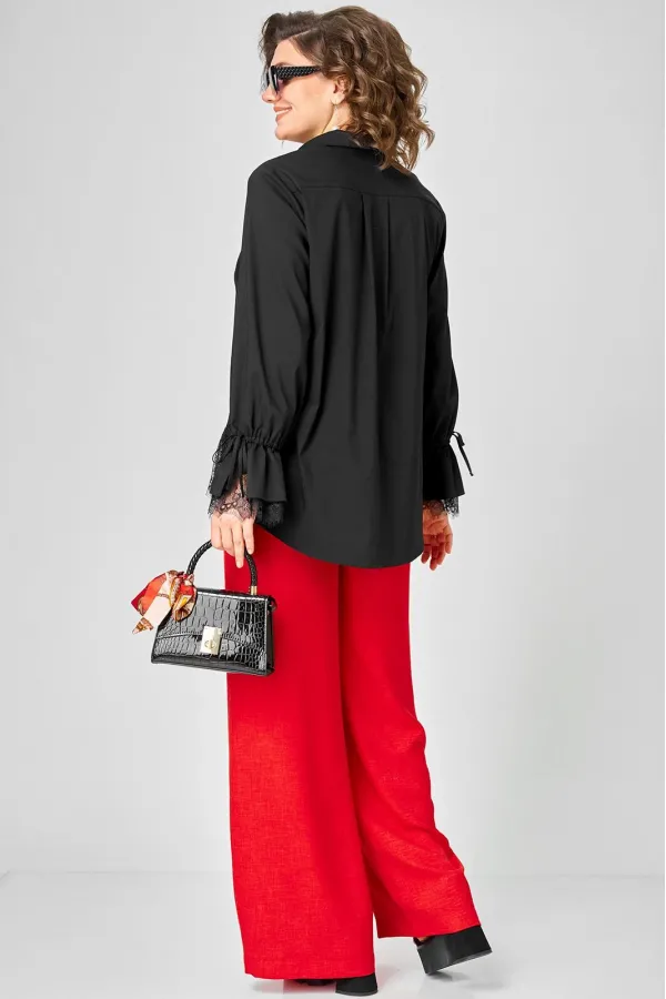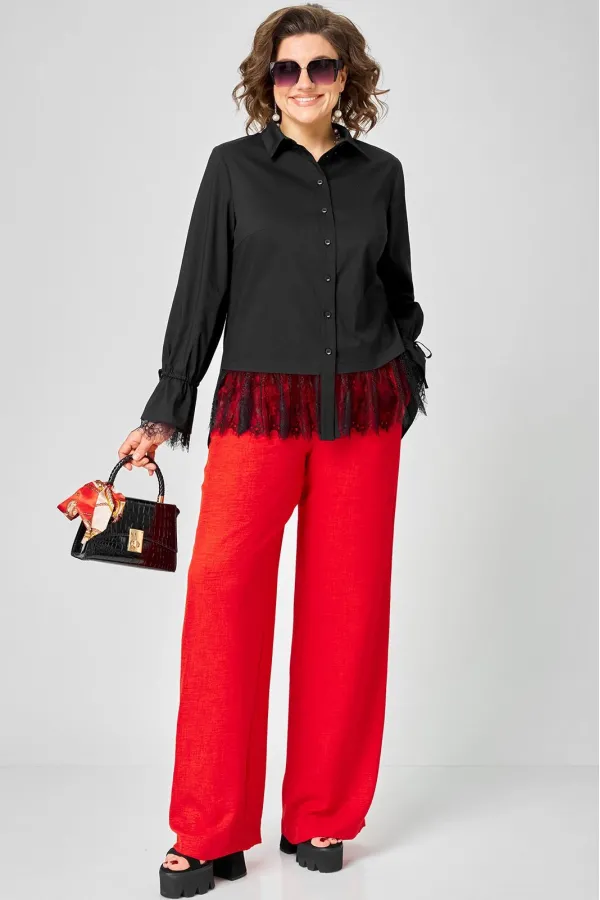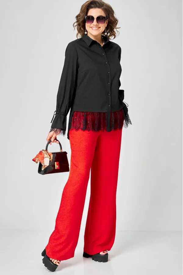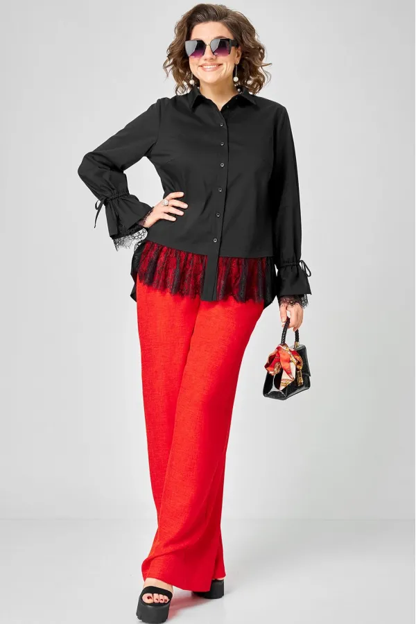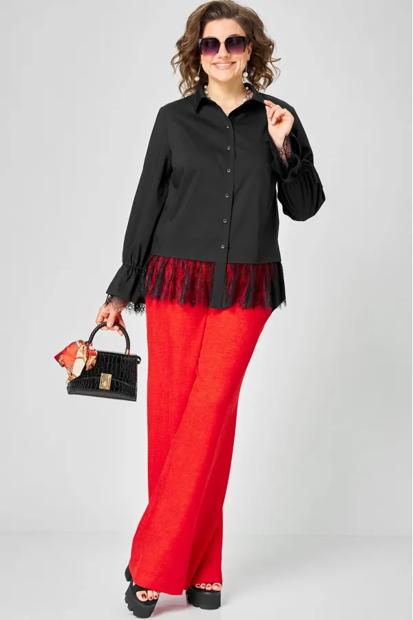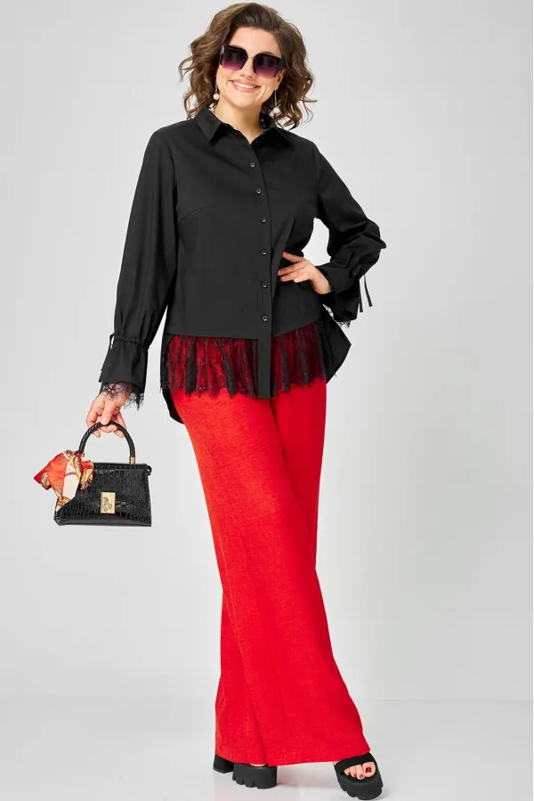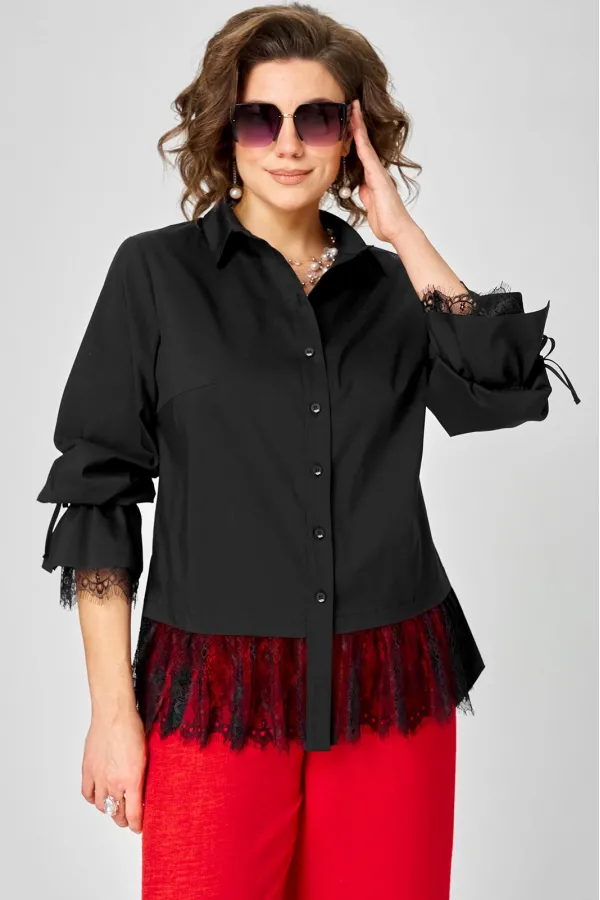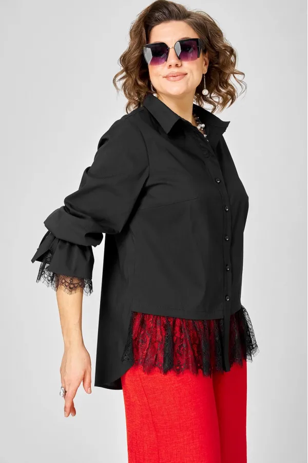 Блузка женская нарядно повседневного элегантного стиля, прямого силуэта с фигурным низом выполнена из шикарного дышащего хлопка в полоску в сочетании с красивым дорогим кружевом. Вырез горловины воротник на стойке рубашечного типа, застежка доверху на обметанные петли и пуговицы. Рукав спущенный, втачной по низу на притачной манжете, в боковых швах обработаны разрезы. На полочке функциональный накладной карман с отделкой из красивого кружева, изящная металлическая бренд лейбл и контрасные пуговицы придают изделию стильный и современный дизайн. Подрез с декоративным кружевом делает изделие трендом сезона. По спинке фигурная кокетка и встречная складка, создают идеальную посадку. Универсальный силуэт, элегантный крой, стильный дизайн - все детали только подчеркивают достоинства фигуры, а декор из кружева создает трендовый образ.
