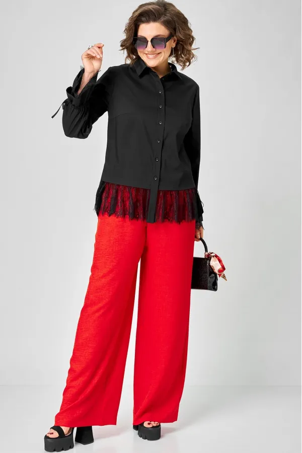 Блузка женская нарядно повседневного элегантного стиля, прямого силуэта с фигурным низом выполнена из шикарного дышащего хлопка в полоску в сочетании с красивым дорогим кружевом. Вырез горловины воротник на стойке рубаше... Читать далее...