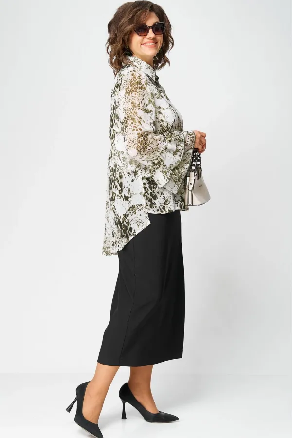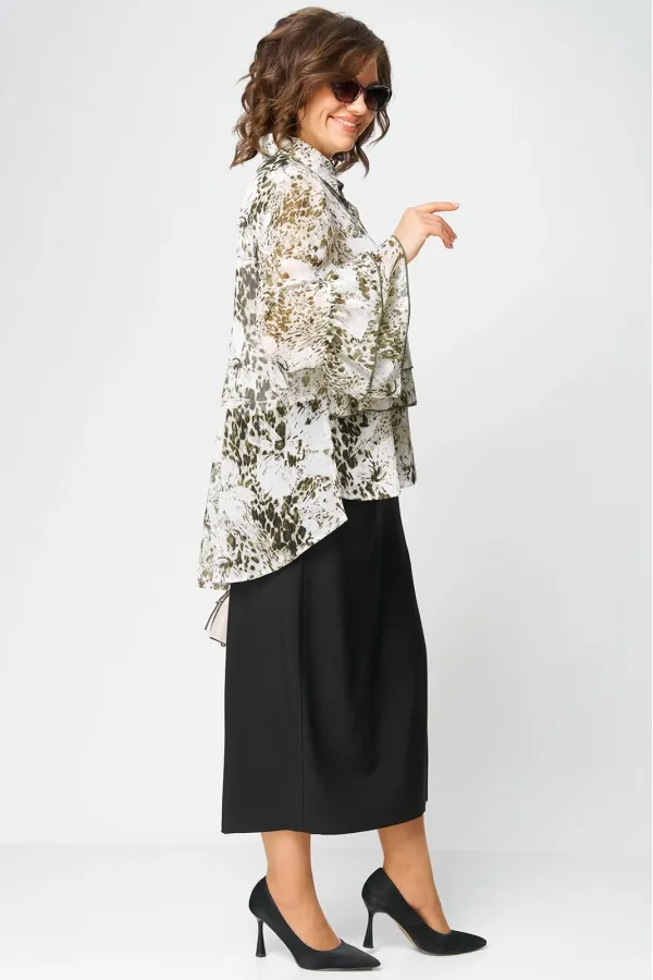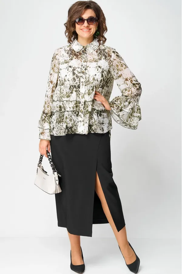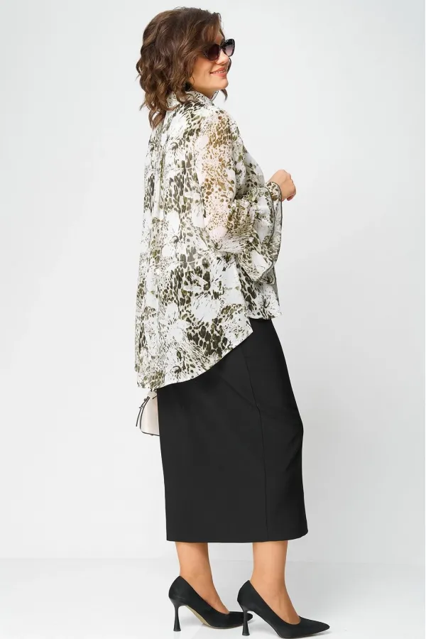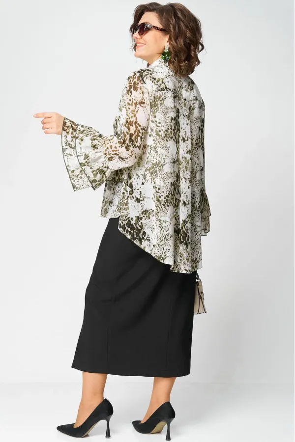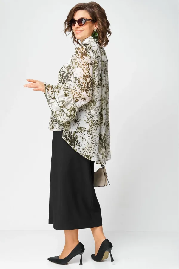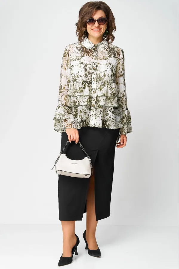 Блуза женская шикарная нарядно - повседневная полуприлегающего силуэта на подкладке, выполнена из красивого шифона с принтом. Вырез горловины воротник на стойке рубашечного типа, рукав втачной по низу с притачными волана... Читать далее...