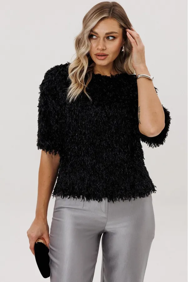 Силуэт: Свободный Вырез горловины: округлый Дополнительное описание: нарядная блузка из эластичного фактурного трикотажа, имитирующего перья.... Читать далее...