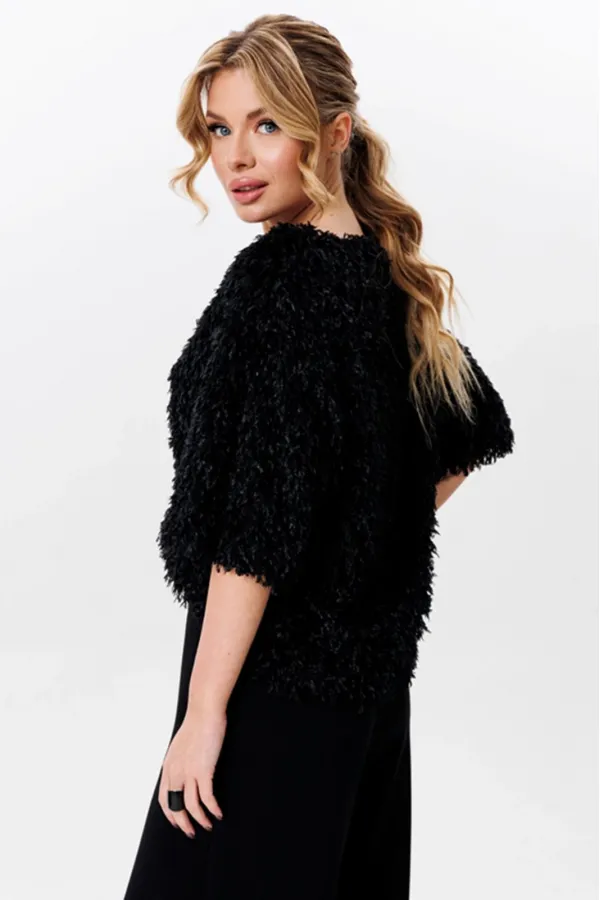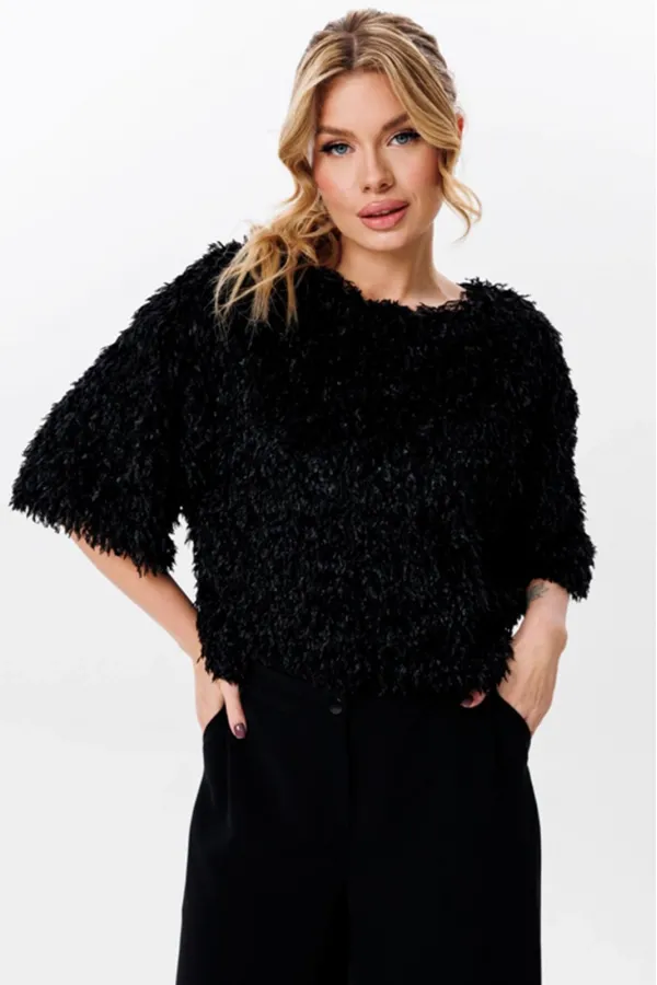 Тип ткани: фактурный трикотаж с длинным ворсом имитирующим перья