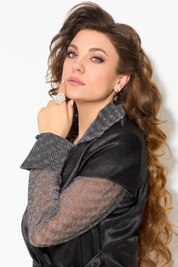 Блузка Аста нарядная, прилегающего силуэта, выполнена из жатой сетки. По горловине полочки рюша. В рюшу вставлен шнур. Застежка однобортная на навесные петли и пуговицы. Воротник отложной, на стойке, рубашечного типа. Ру... Читать далее...