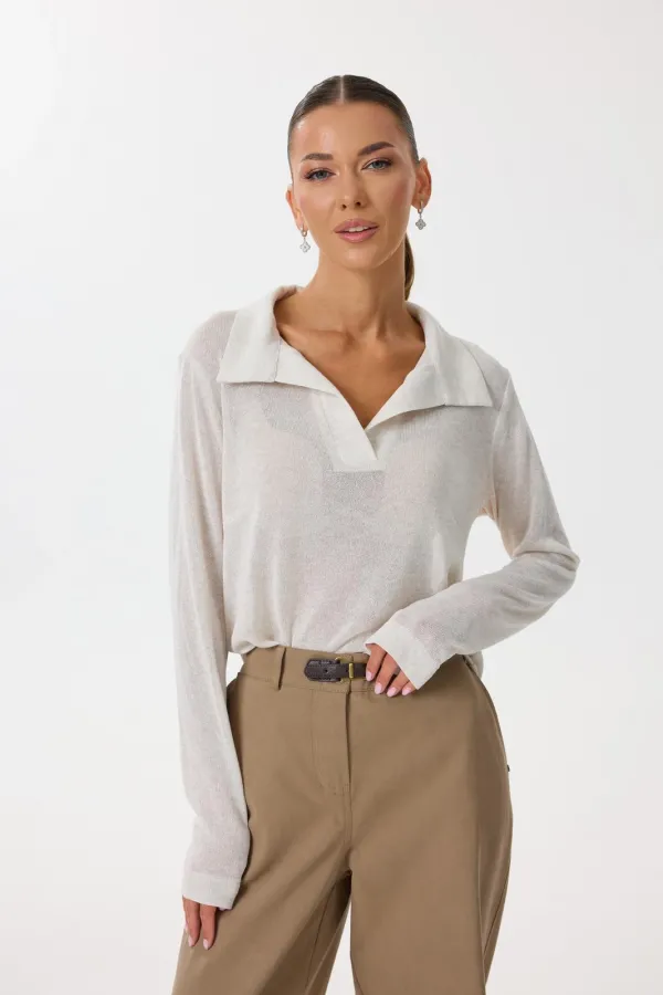Блузка женская прямого силуэта. По переду обработаны вытачки, застежка притачными планками. Спинка цельнокроеная. По горловине воротник с цельнокроеной стойкой. Рукав длинный одношовный. Воротник и планка выполнены из тк... Читать далее...
