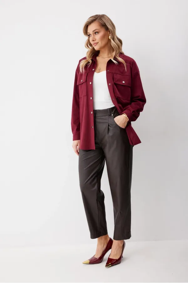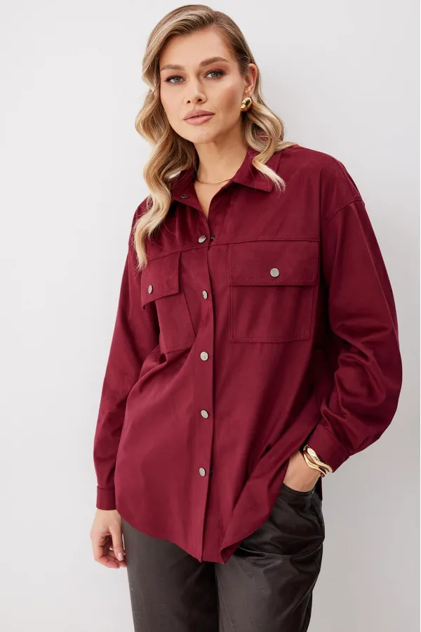 Блузка женская прямого силуэта из замшевой ткани длиной за линию бедер. По переду блузки отрезные кокетки и нагрудные накладные карманы с клапаном, застегивающиеся на кнопку. Спинка с отрезной кокеткой и встречной складк... Читать далее...