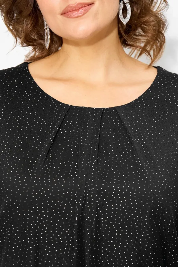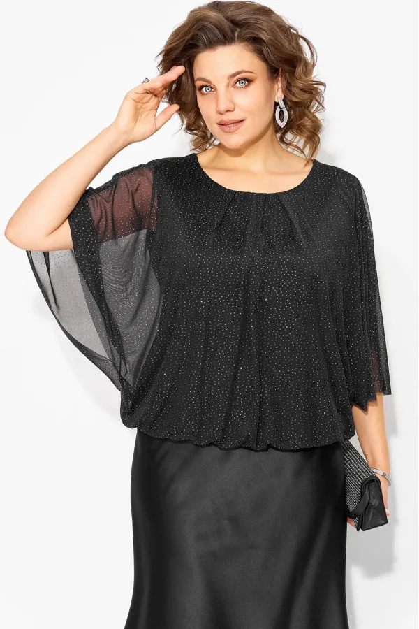 Эта модная женская блуза отличается уникальным стилем бохо и нарядным настроением, а прозрачный рукав с мерцающим эффекутом добавляет легкости и особого шарма. Объемный цельнокроеный рукав делают ваш наряд эффектным, женственным и привлекательным. Округлый вырез горловины по полочке заложен в мягкие складки. Низ присборен и оформлен мягкой трикотажной притачной планкой. Подкладка выполнена из мягкого трикотажа, садится точно по фигуре. Изюминкой данной модели служит эффектный вырез на спине с декоративной резинкой с мерцающим эффектом. Выбирая эту блузку, вы выбираете стиль, универсальность и возможность всегда быть в центре внимания. Добавьте её в свой гардероб, чтобы создать образы, которые будут вдохновлять и восхищать!
