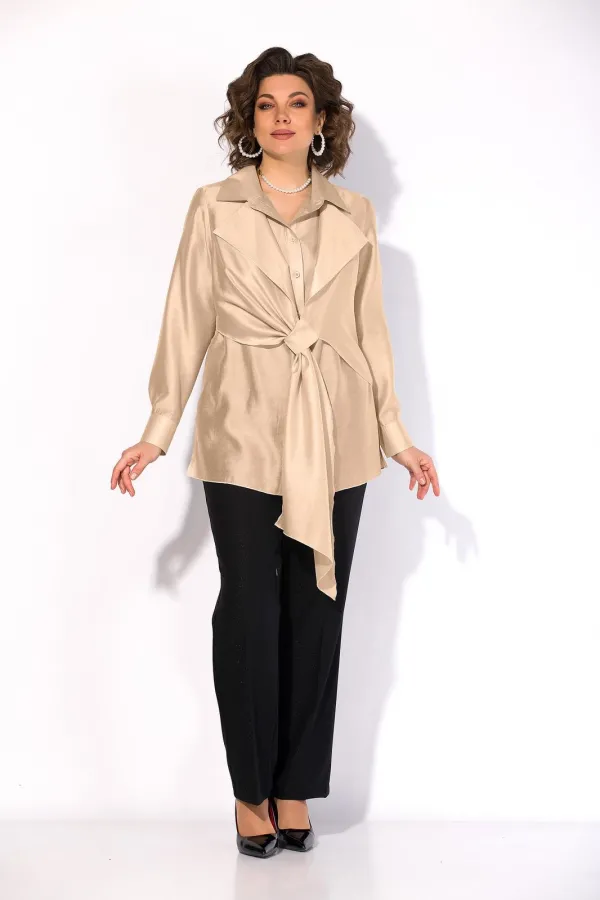 Такой цвет цвет костюма подчеркнут вашу индивидуальность и хороший вкус. Независимо от того, выберите ли вы его для офиса или вечера, эта блуза станет верным спутником в создании вашего стильного образа как из пинтерест 2026 года. Длина по спинке – 70 см, рукав – 62 см.
