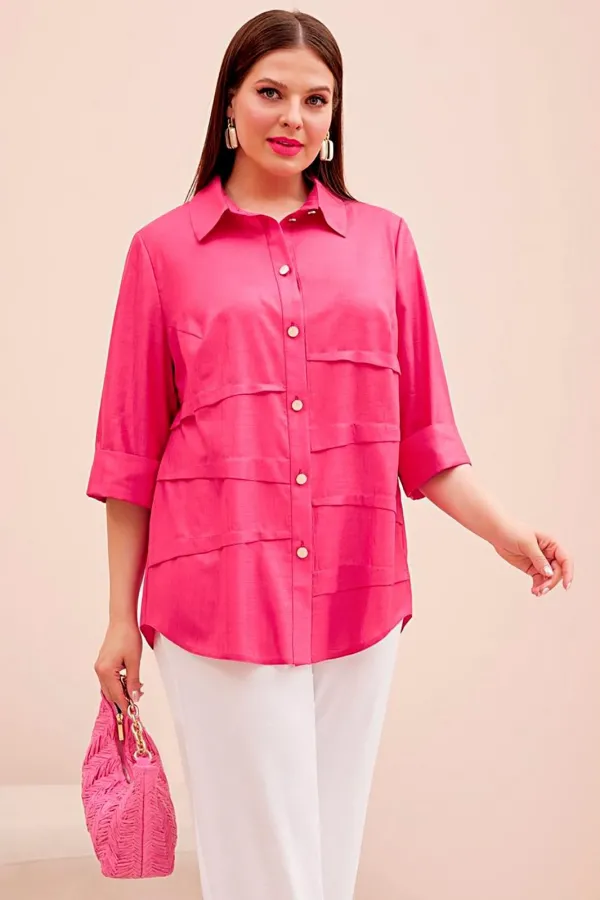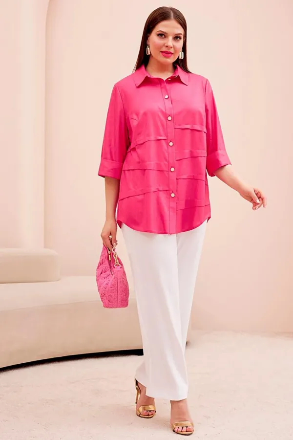 Стильная блузка-рубашка с застроченными складками и металлическими пуговицами отлично впишется в ваш гардероб, легко сочетать с другими вещами создавая стильные и современные образы , подходит для шпилек и обуви на плоск... Читать далее...