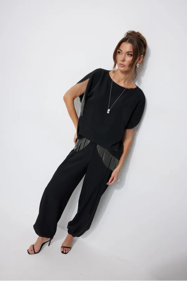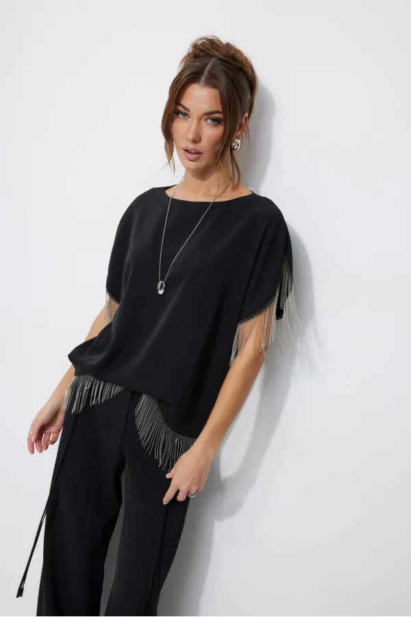 Блузка прямого силуэта из струящейся ткани. Горловина-лодочка, на спинке застежка на петлю и пуговицу. Рукав цельнокроеный с фигурным вырезом. По низу рукава и низу изделия декоративная тесьма. Обращаем ваше внимание, чт... Читать далее...