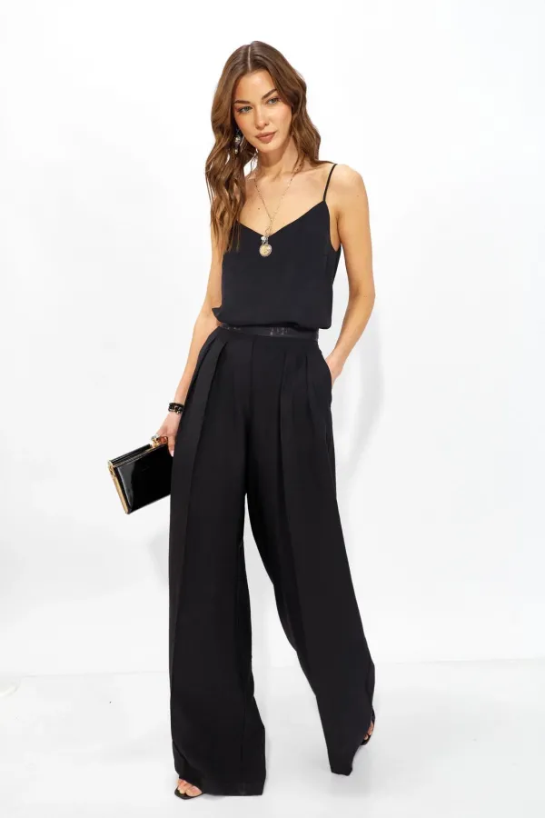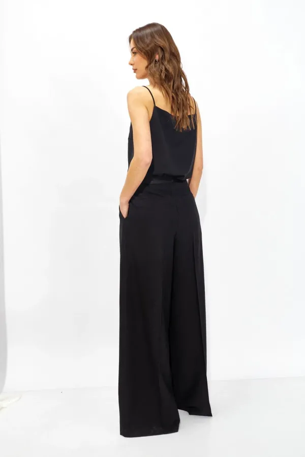 Базовый топ в бельевом стиле из струящейся ткани прямого силуэта с V-образным вырезом на тонких регулируемых бретелях. Его можно носить отдельно или в многослойных образах.