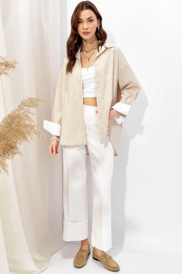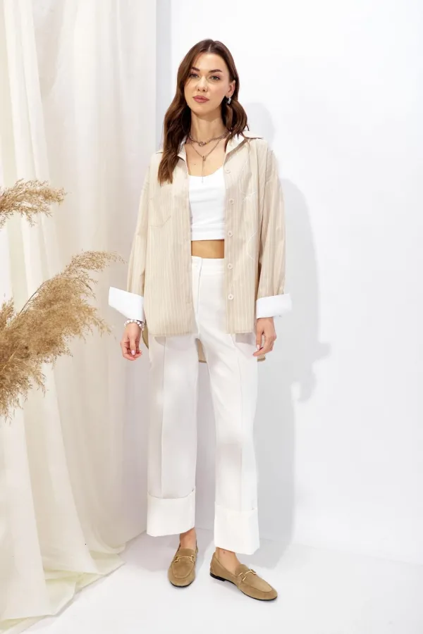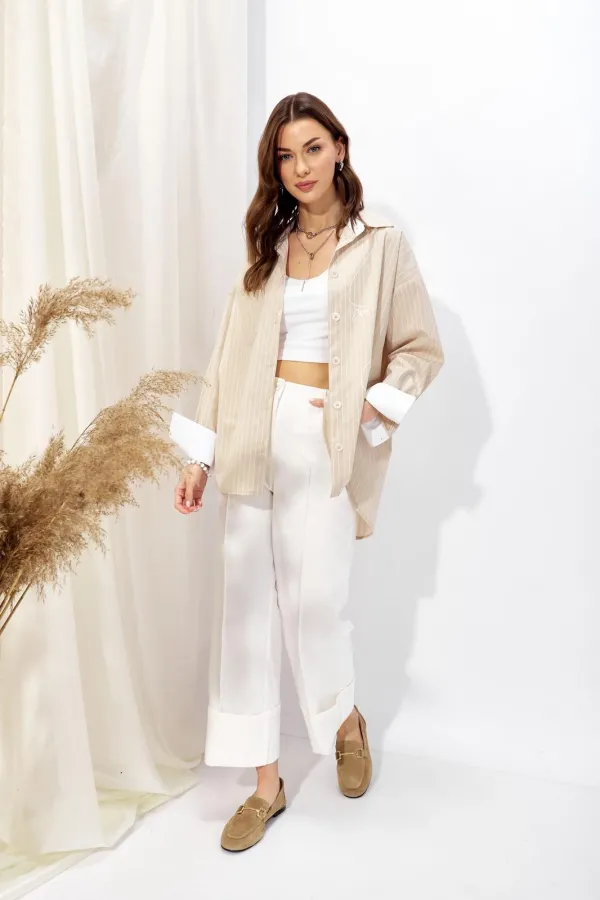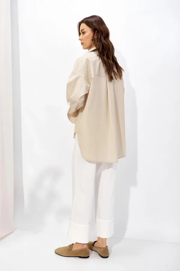 Блузка прямого силуэта из рубашечной ткани с фигурным низом. Воротник на стойке с застежкой по центру на петли и пуговицы. Рукав со спущенной линией плеча, по низу манжета с застежкой на петлю и пуговицу. На спинке коке... Читать далее...