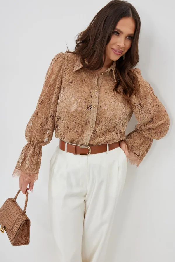 Невероятно нежная и стильная блуза прямого кроя с нагрудными вытачками. Рукав втачной, по низу присборен на эластичную тесьму и дополнен притачной кружевной манжетой. Застежка центральная на пришивные пуговицы. Воротник отложной на стойке. Блуза выполнена из красивого нежного бархатного кружева премиум качества. Длина блузы от плечевого шва 67см. Длина рукава 69 см.