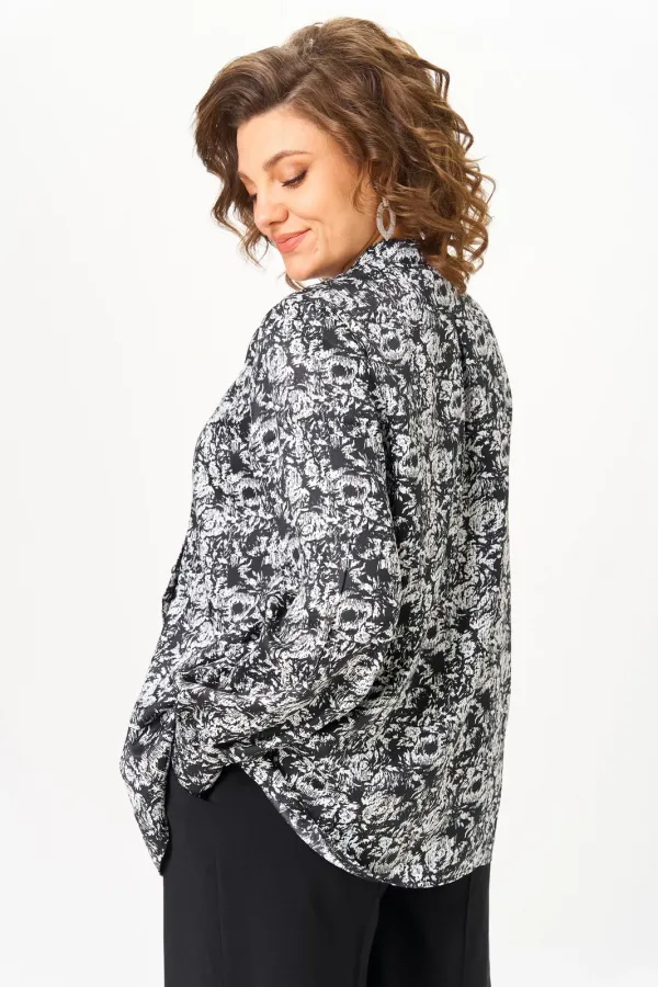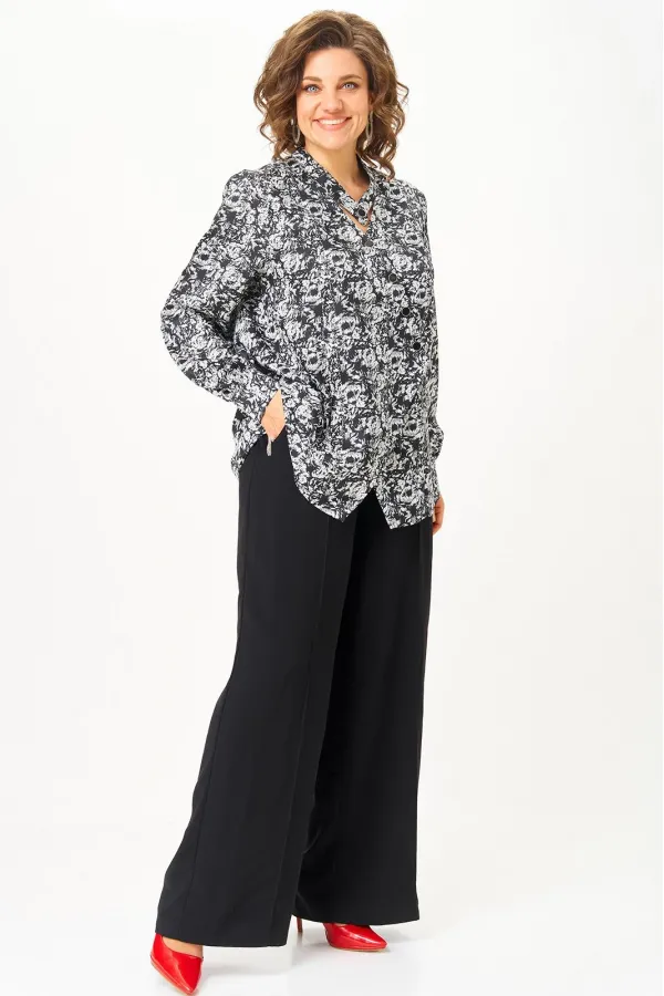 Эта блуза — про характер. Про ту самую дизайнерскую работу, где каждая деталь продумана: асимметричная застёжка, аккуратные чёрные пуговицы, перекрытие полочек, создающее мягкую архитектуру силуэта. Принт — графический флоральный орнамент, ближе к бионике: будто цветы, живущие в ритме линий и штрихов. Благодаря этому рисунку вещь выглядит не просто «нарядной», а современной, динамичной, стильной. Ткань — качественный полиэстер с лёгким сатиновым блеском. Он струится, держит форму и «собирает» образ без усилий. Блуза универсальна: спорт, офис, классика, гастродейтинг, дом, путешествия — она работает в любой капсуле. ✔️ Главные акценты