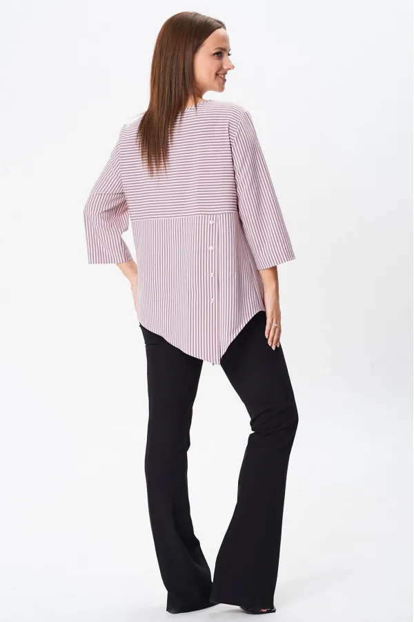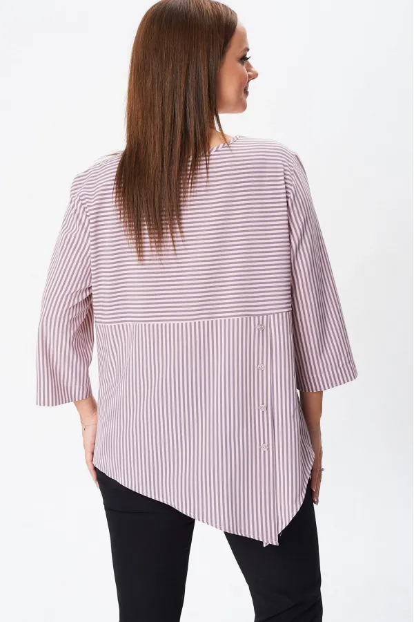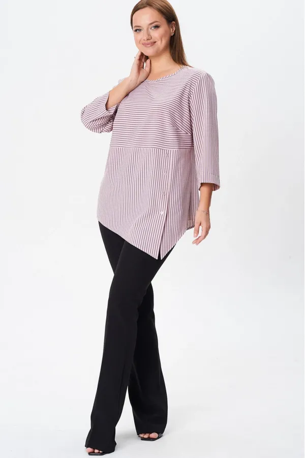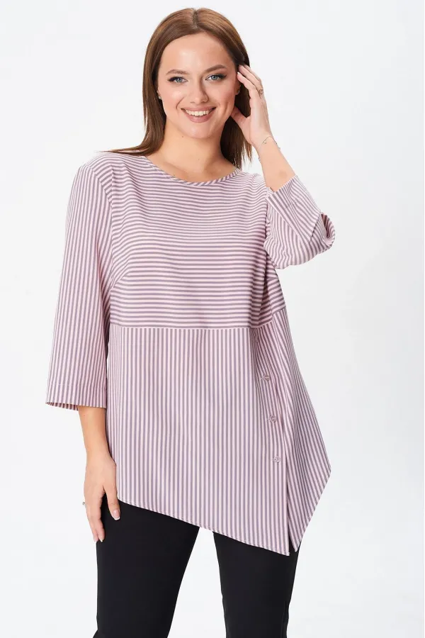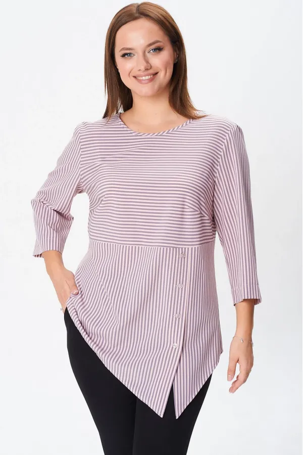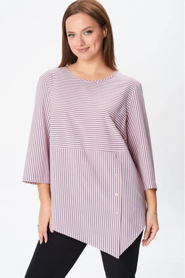 Стильная блузка с круглым вырезом горловины и нагрудными вытачками. По переду и спинке отрезная по линии талии. Нижняя часть блузки с ассиметричным фигурным низом как спереди, так и сзади и функциональной застежкой на пе... Читать далее...
