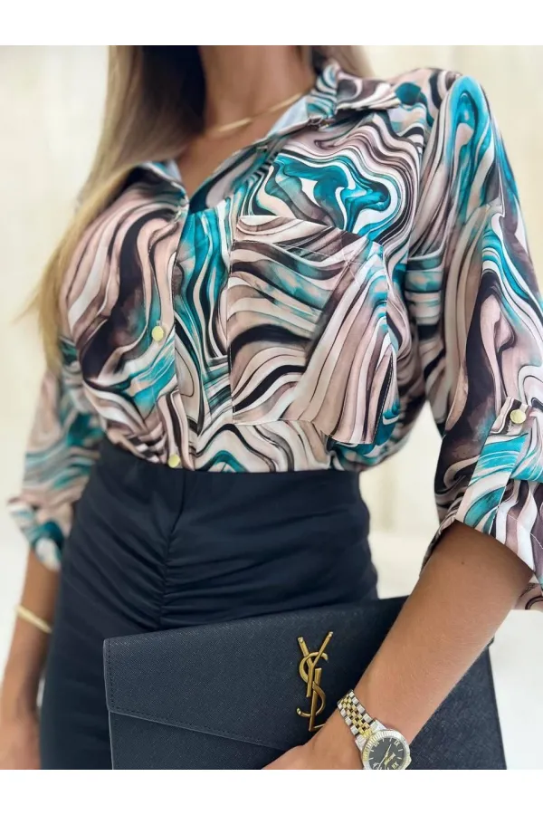 Блузка женская классическая свободная. Выполнена из приятного материала. Прямого свободного силуэта. Воротник рубашечного типа отложной. Рукава втачные 3/4 с манжетой и петлей и пуговицей, с возможностью регулировки. Зас... Читать далее...
