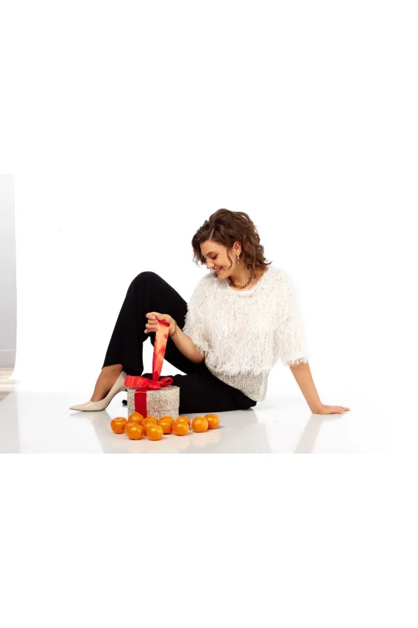 Блузка нарядная прямого силуэта, из интересной ткани с бахромой и отделкой из паеток. Вырез горловины округлой формы, со спущеныным рукавом длиной 3/4 Длина блузки 55см, длина рукава от горловины 41,5смВ наличии 17.11.2... Читать далее...