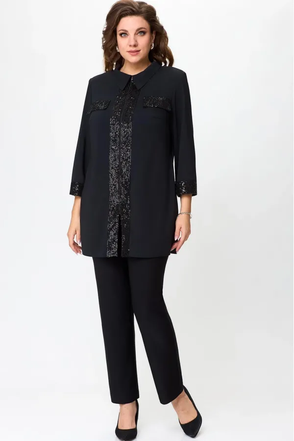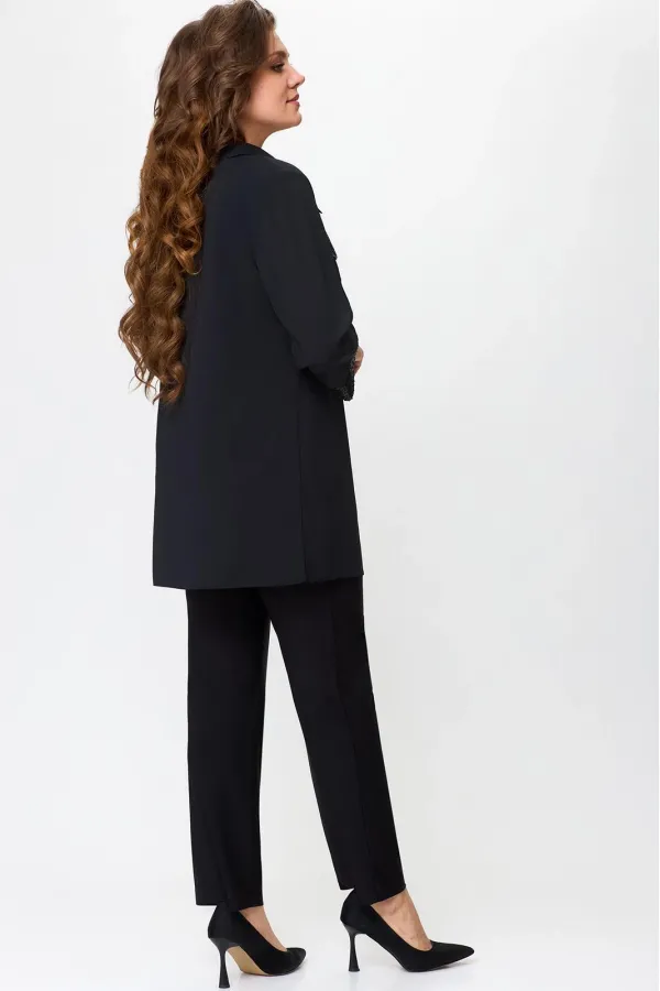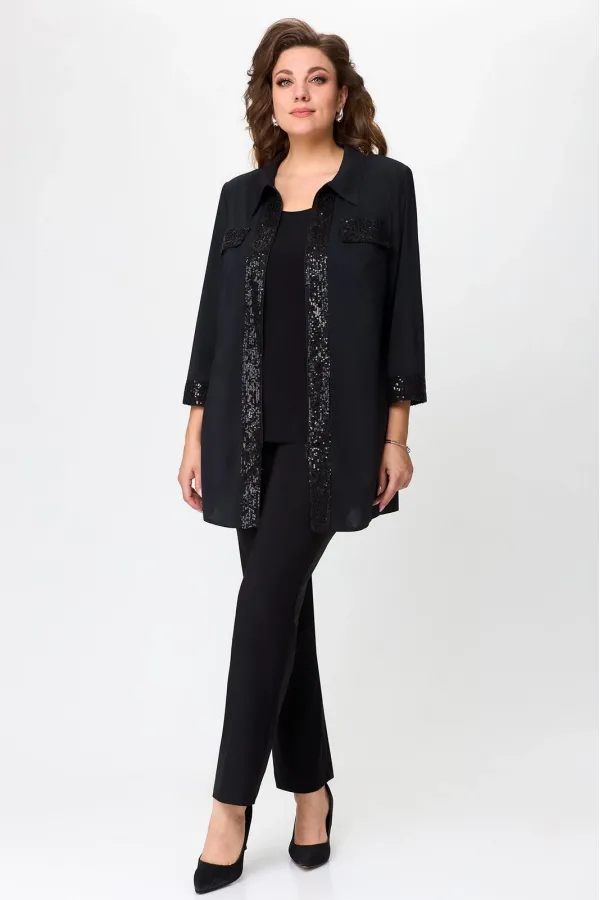 Комплект женский двухпредметный состоящий из жакета и топа. Жакет женский прямого кроя с втачным рукавом. Застежка центральная на молнию. По горловине отложной воротник. По переду декоративные клапаны и планка. По линии ... Читать далее...