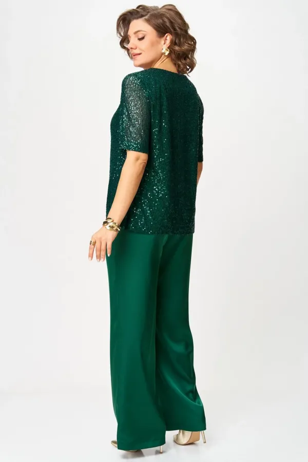 Блузка женская прямого силуэта из ткани пайетка с втачным рукавом. Горловина округлой формы обработана обтачкой. По линии груди вытачки. Рукав длиной до уровня локтя. В боковых шах обработаны разрезы. Перед и спинка блузки на трикотажной подкладке.
