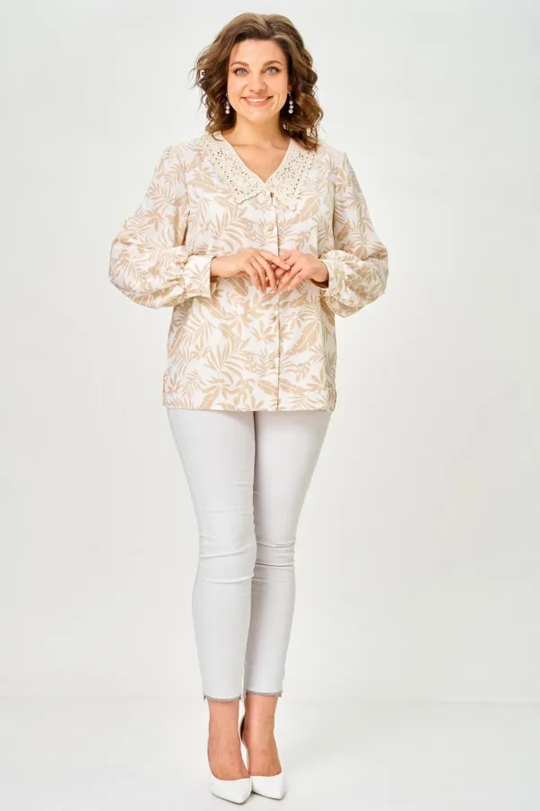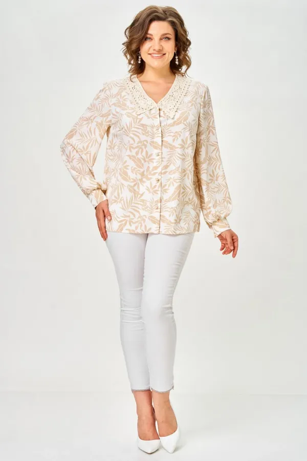 Блузка женская прямого силуэта, с втачным рукавом. Горловина v-образной формы. Отделкой служит воротничок из кружева. Застежка центральная на пять петель и пуговиц. По линии груди вытачки. Рукав длинный расширенный к ... Читать далее...
