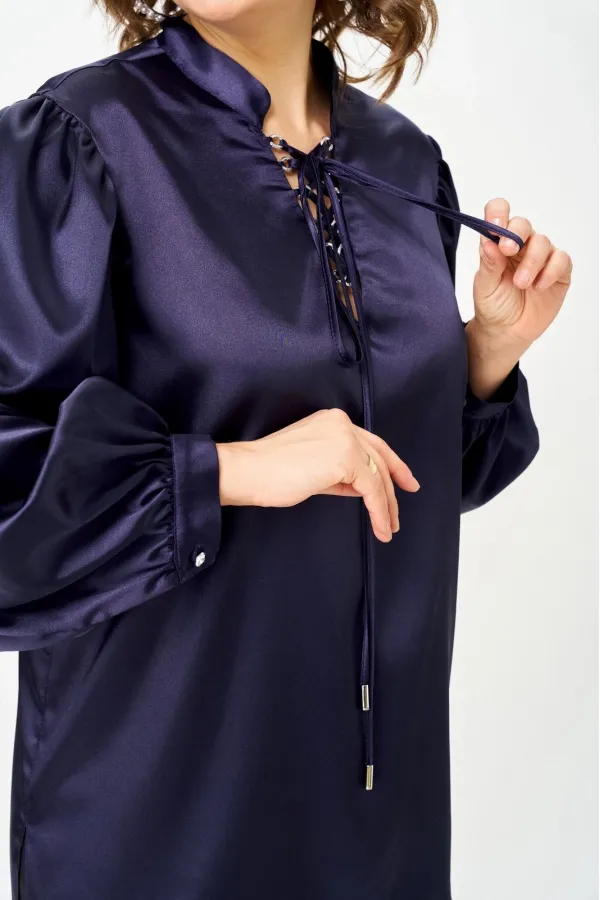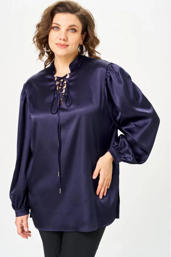 Блузка женская прямого кроя, с втачным рукавом. Горловина v- образной формы с воротником стойкой декорирована контрастной шнуровкой. Спинка цельная. Рукав длинный со сборкой по окату, низ рукава присобран на притачную... Читать далее...