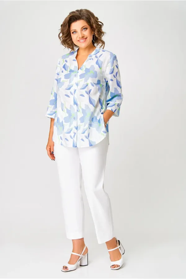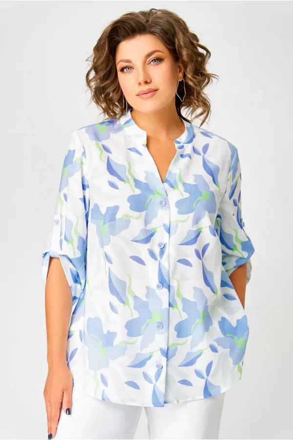 Блузка женская свободного силуэта с центральной застёжкой на петли и декоративные пуговицы, выполнена из льняной ткани с добавлением вискозы. Полочка с нагрудными вытачками. Спинка с отрезной кокеткой и бантовой складко... Читать далее...