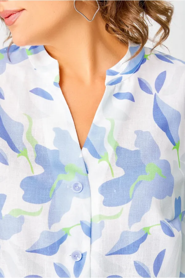 Код Товара: 852 белый/принт голубые цветы Swallow
