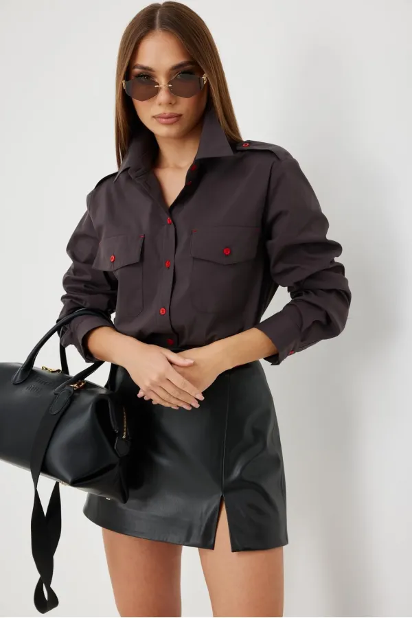 Блузка женская свободного силуэта, из рубашечной ткани в полоску. Спинка с кокеткой. Застежка на петли и пуговицы, по переду накладные карманы с клапанами, по плечевым швам погоны, фиксирующиеся пуговицей, рукав свободны... Читать далее...