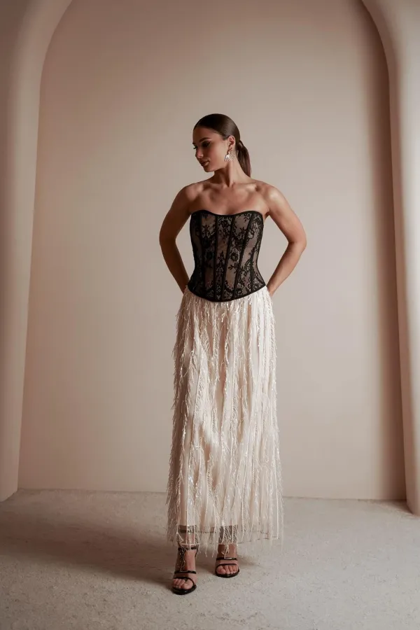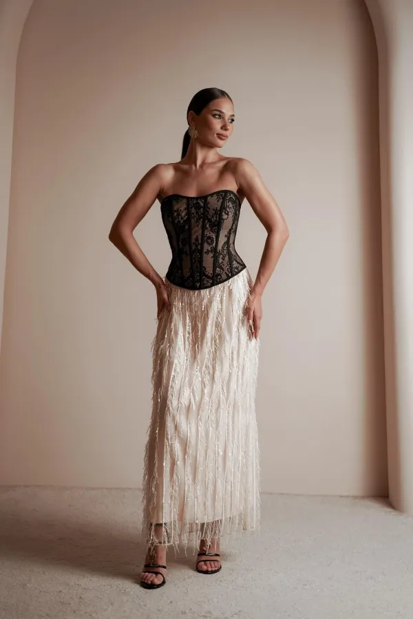 Укороченная блузка из кружева с сатиновой подкладкой, прилегающего силуэта. По спинке шнуровка. По переду и спинке по три рельефных шва. Блузка отлично подойдет для коктейльных и вечерних выходов, ее можно использовать, ... Читать далее...