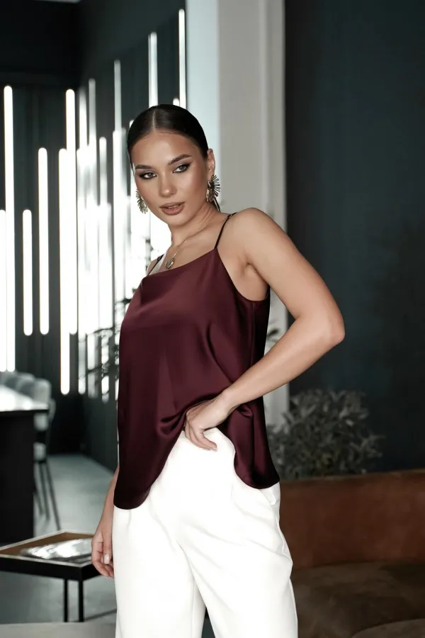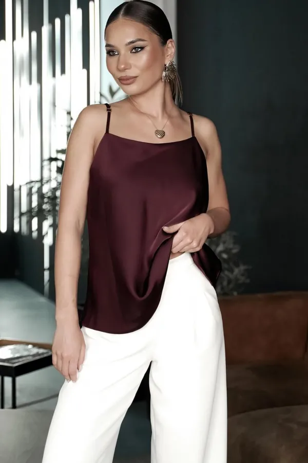 Атласная блузка-топ свободного силуэта на регулируемых бретелях. Блузка на атласной подкладке.