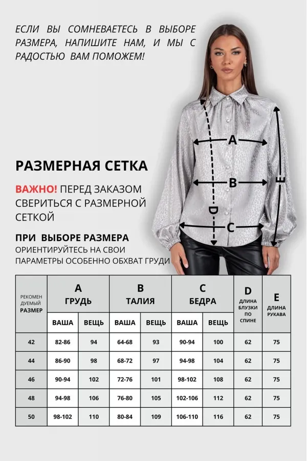 Блузка выполнена из благородной ткани, напоминающей плотный шифон, шёлк или лёгкий атлас — она приятна на ощупь, непрозрачна и практически не мнётся. Сдержанную элегантность фасона оживляет стильный леопардовый принт, добавляющий образу ноту смелости и актуальности. Эта нарядная и универсальная вещь создана для создания идеального силуэта: её можно носить под заправку для безупречного делового стиля или оставить навыпуск для более свободного и модного образа. Благодаря своему элегантному фасону, блузка станет безусловным фаворитом как для офиса, так и для торжественного события.Уход: бережная стирка при температуре не выше 30°С.