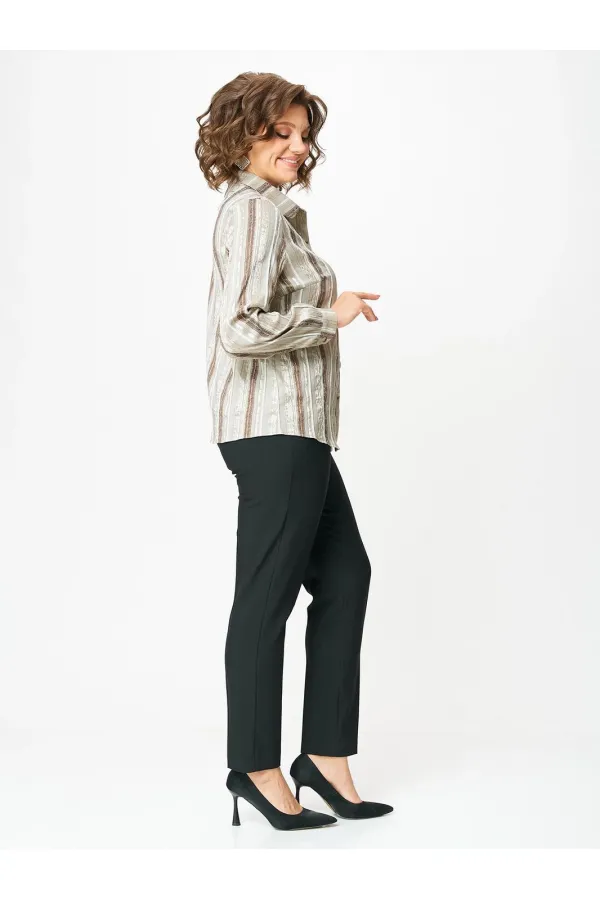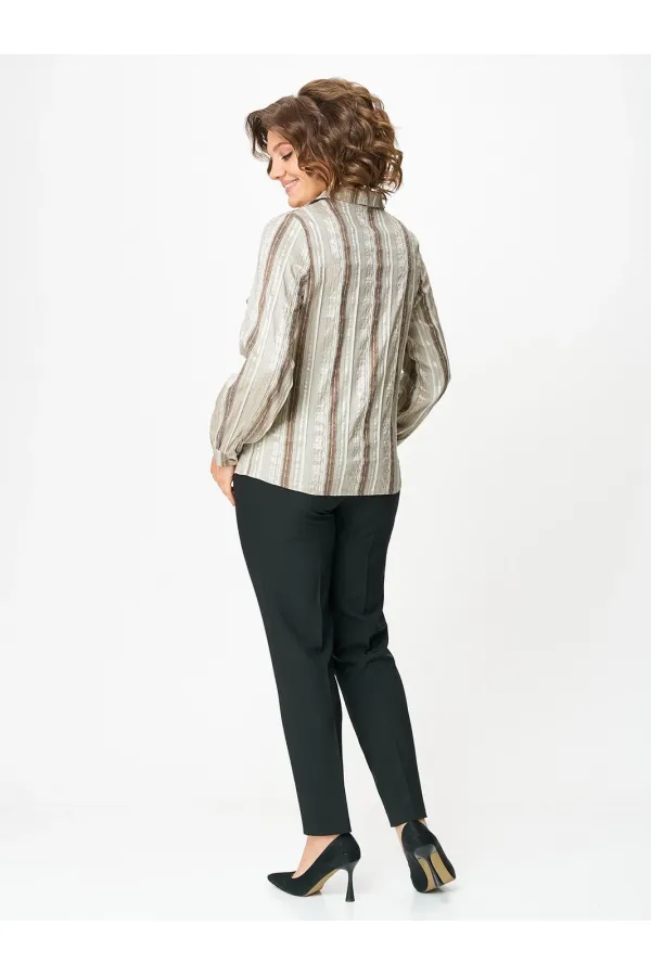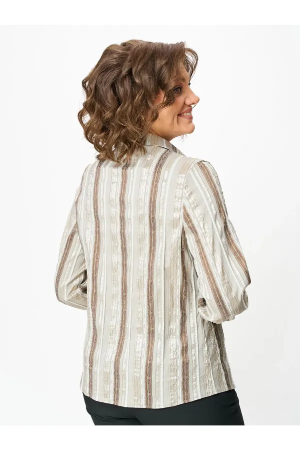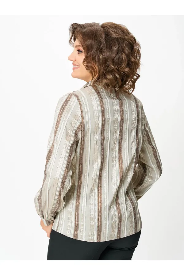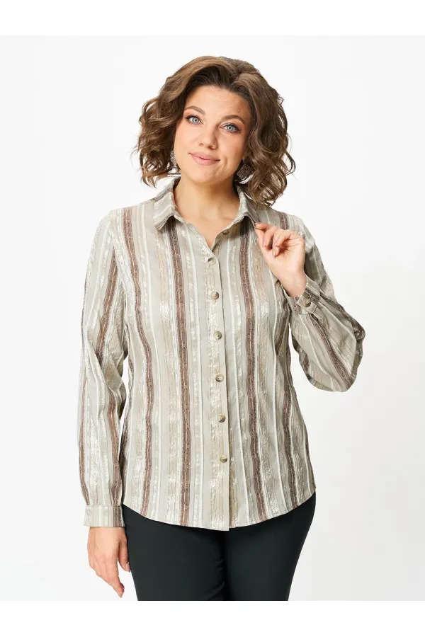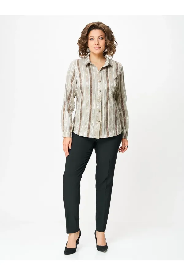 Комфортная женская блузка рубашечного типа из хлопкосодержащей ткани. Силуэт приталенный. Спереди вытачки. Рукав втачной длинный заканчивается манжетой с разрезом и застежкой на пуговицу. Полосатый винтажный дизайн придаёт рубашке праздничный вид. Модель блузки подходит на любой тип фигуры и на любой рост. Эта рубашка в полоску легко комбинируется с любыми вещами в гардеробе и подходит для различных мероприятий. Важно при выборе размера ориентироваться на личные замеры и соотнести их с таблицей обмерных данных в готовом виде, указанной в галереи фотографий. Именно так Вы подберете правильный размер и будете радоваться заказу. Чтобы перейти в общий каталог моделей, нажмите на иконку бренда в карточке товара. Все изделия производятся в Республике Беларусь на собственной фабрике.